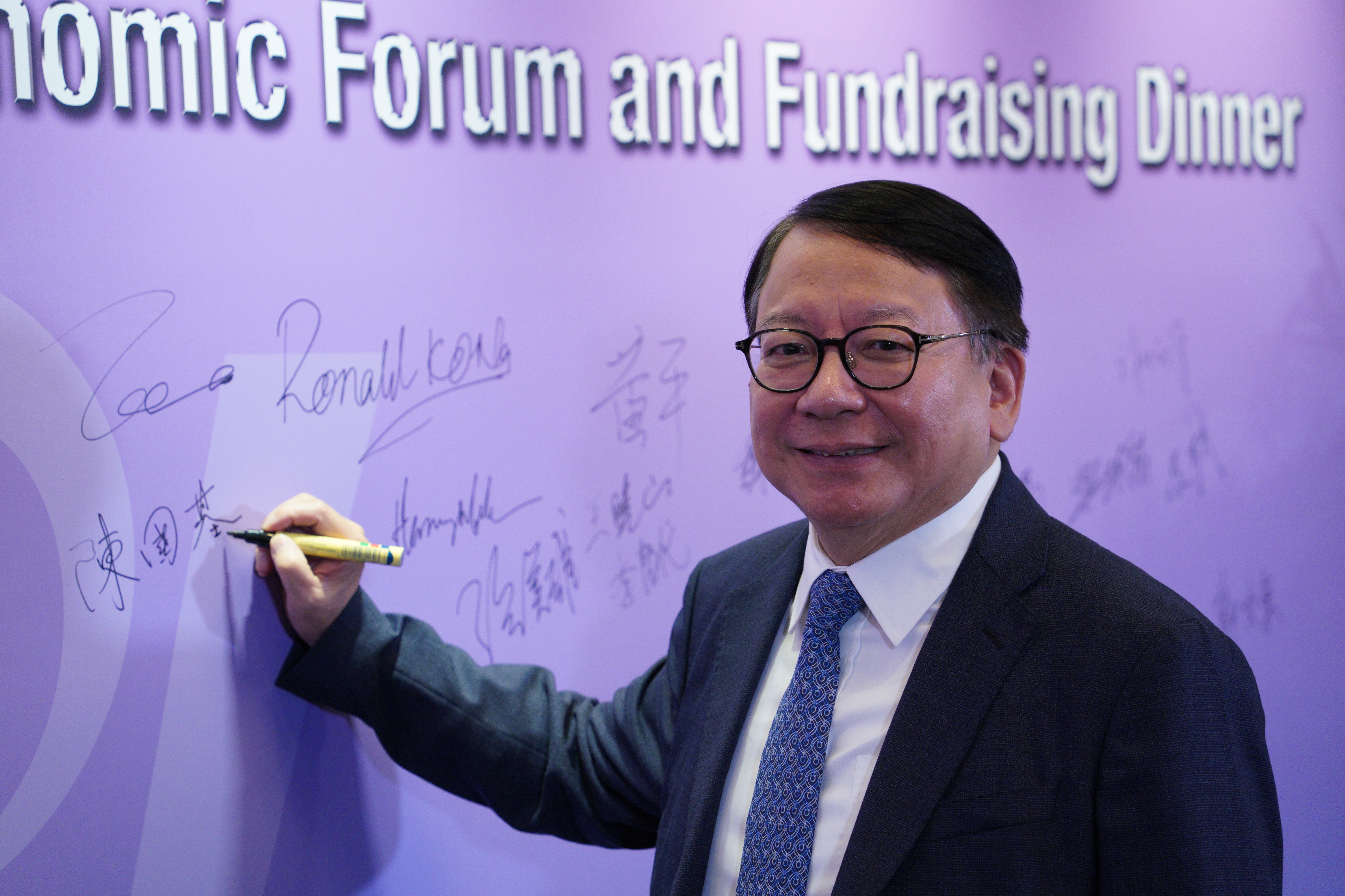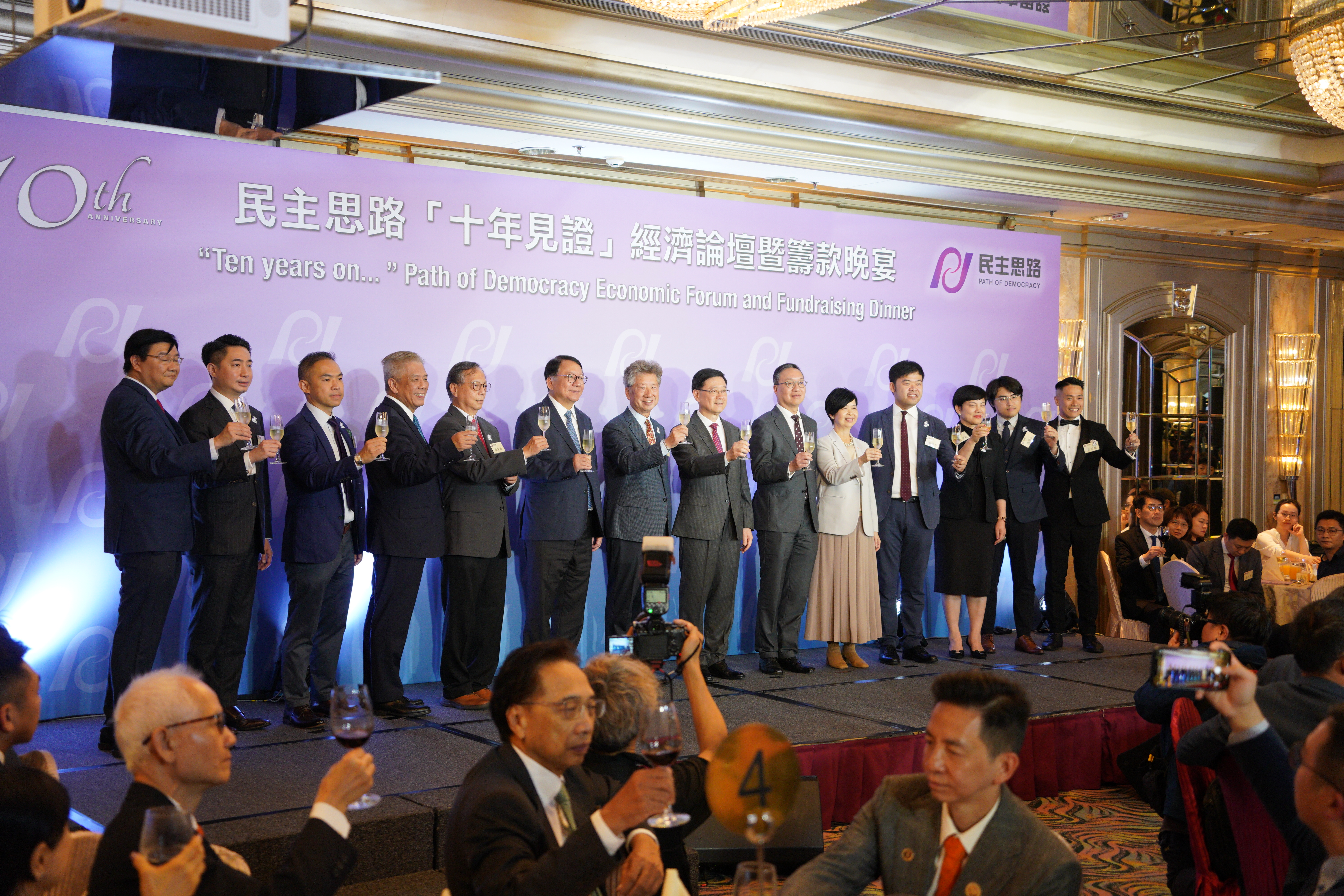 (大公文匯全媒體記者 周傾芫)民主思路「10年見證」經濟論壇暨籌款晚宴今日(17日)舉行。行政長官李家超、政務司司長陳國基、律政司司長林定國、民主思路召集人湯家驊出席活動。