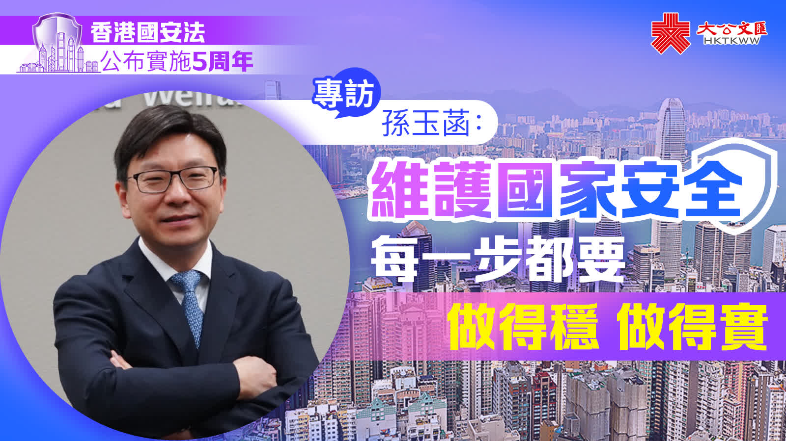 孫玉菡在接受香港文匯報訪問時,比較了5年前與現在的分別。他說,國安法對特區政府及受政府資助的機構都有明確要求,即主動維護國家安全,「以前大家對國家安全的概念比較模糊,有了國安法之後,大家都清晰知道要一步步積極做好維護國家安全的工作。」