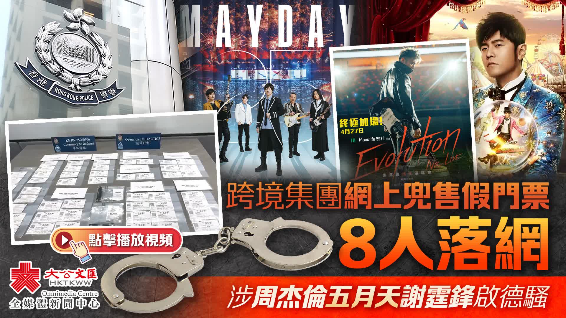 大公文匯全媒體報道,啟德體育園自今年3月開幕以來已經舉辦了15場大型演唱會,吸引約59萬觀眾入場;惟「黃牛飛」「假門票」真假難辨,不少市民及遊客不幸中招。警方今日(18日)宣布成功瓦解一個有組織跨境詐騙集團,涉及至少40宗假演唱會門票相關騙案,涉款高達65萬港元,其中損失最多一宗金額超過6.8萬港元。警方表示,目前已有8人落網,包括集團首腦,不排除有更多人被捕。據了解,騙徒售賣的假門票涉及啟德體育園5個演唱會,包括五月天、謝霆鋒、林俊傑、周杰倫等。