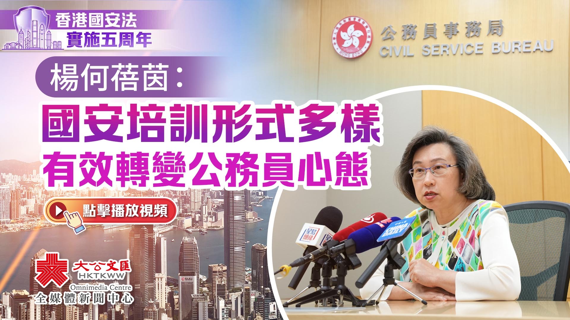 大公文匯全媒體報道,香港國安法實施五周年成效顯著,公務員事務局局長楊何蓓茵近日接受大公文匯全媒體、點新聞訪問時表示,香港國安法實施之後,公務員國家安全意識大幅提升,為香港經濟發展和社會穩定奠定了堅實的基礎。