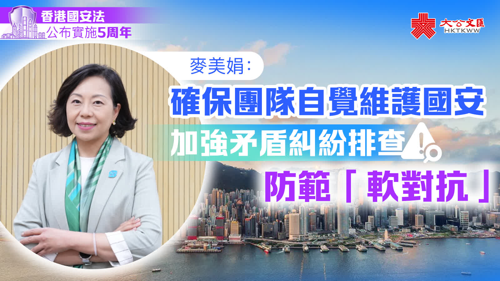 大公文匯全媒體報道,香港國安法實施五周年,民政及青年事務局局長麥美娟接受大公文匯全媒體、點新聞訪問時表示,民政及青年事務局會繼續聯同民政事務總署,積極配合香港特別行政區維護國家安全委員會的工作,透過多元化活動,提升社會各界尤其是香港青年對維護國家安全的認識。她強調,社會穩定是經濟發展的基石,整個民政團隊會以市民利益為依歸,堅持和發展好新時代「楓橋經驗」,加強矛盾糾紛的排查,及時在萌芽階段化解相關風險。