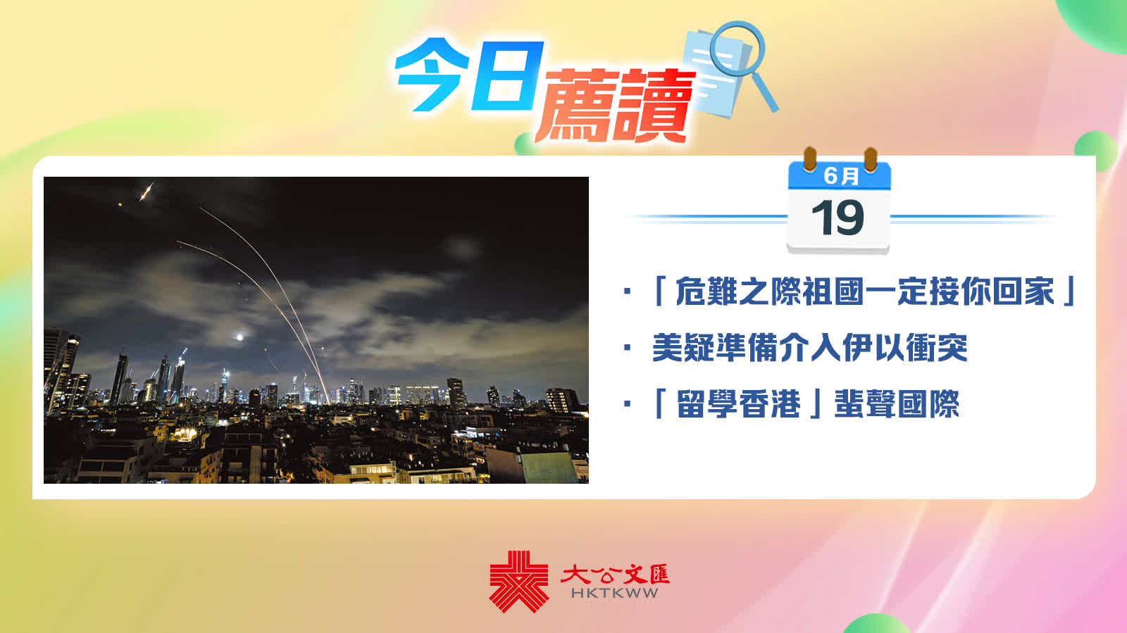 大公報A4版《「危難之際祖國一定接你回家」 791同胞從伊朗撤出》要聞報道,以色列與伊朗大規模衝突不斷升級,當地人員面臨嚴重安全風險。中國外交部18日表示,目前已有791名中國公民自伊朗轉移至阿塞拜疆、土庫曼斯坦等周邊國家,還有1000多人正在轉移撤離途中。中國駐阿塞拜疆大使魯梅說:「請大家相信,縱有萬里歸途,危難之際,祖國一定接你回家!」點擊閲讀詳情>>>