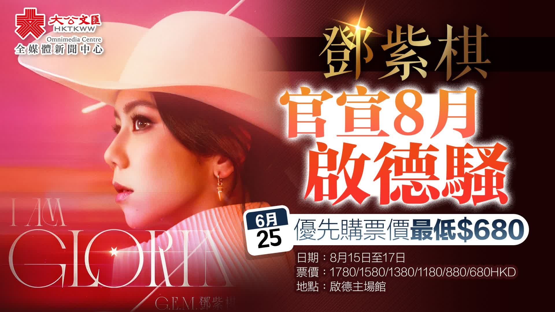 大公文匯全媒體報道,「鐵肺歌后」G.E.M.鄧紫棋今日(19日)驚喜官宣,將重返香港,於8月15日至17日在啟德主場館舉行一連三場《G.E.M. I AM GLORIA 世界巡迴演唱會2.0》香港站。她今日(19日)在社交平台開心宣布:「香港,我回來了!8月15-17號,我的生日周,啟德見!」