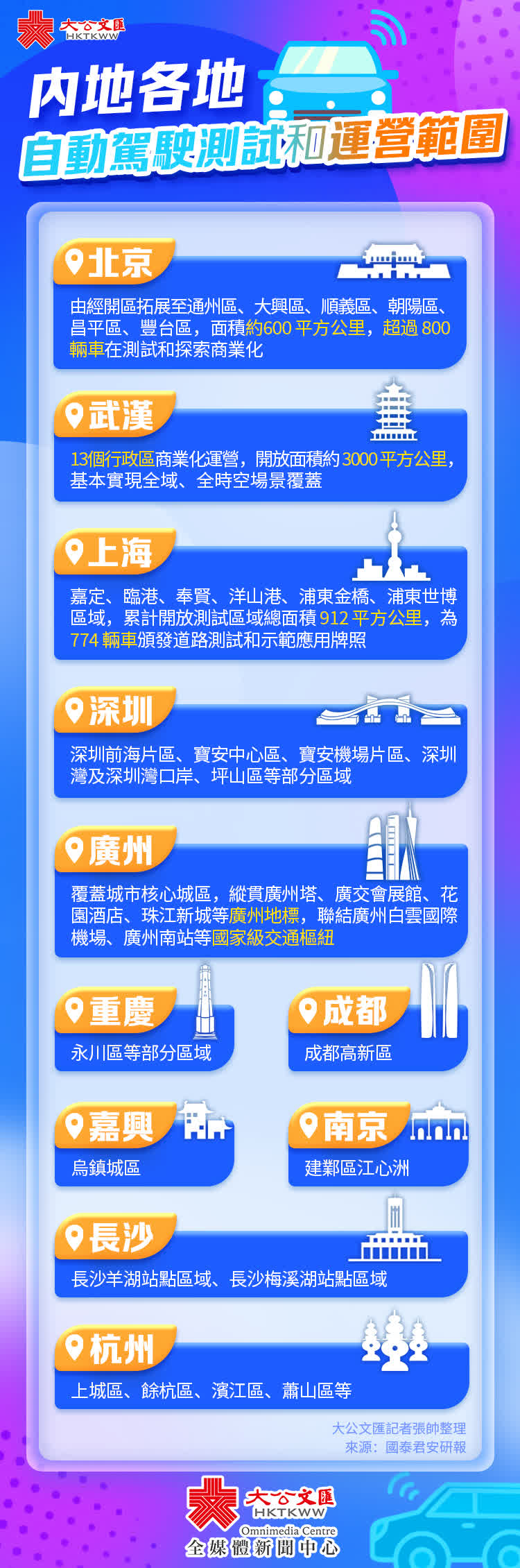 在內地,湖北武漢近年積極探索新的智慧出行方式,擁有全球範圍最大規模的自動駕駛運營區域。公開數據顯示,「蘿蔔快跑」上路範圍已覆蓋武漢13個行政區,超過3000平方公里的區域,累計發放各類自動駕駛測試道路和運營牌照2000多張,吸引近500輛自動駕駛汽車展開常態化運營,觸達770萬人口,「無人車,打蘿蔔」成為武漢市民以及遊客的出行新選擇。大公文匯網記者梳理,武漢自動駕駛車經歷了從政策先行到技術驗證再到場景擴展,最終實現商業運營的發展之路,並於去年底出台智能網聯汽車行業新規,構建全方位安全保障體系,確認無人駕駛交通事故責任劃分。在自動駕駛快速發展的當下,武漢作為「先行者」,希望將武漢的成功模式和經驗,複製到外地,這或可為香港交通進入自動駕駛新時代提供借鑒。