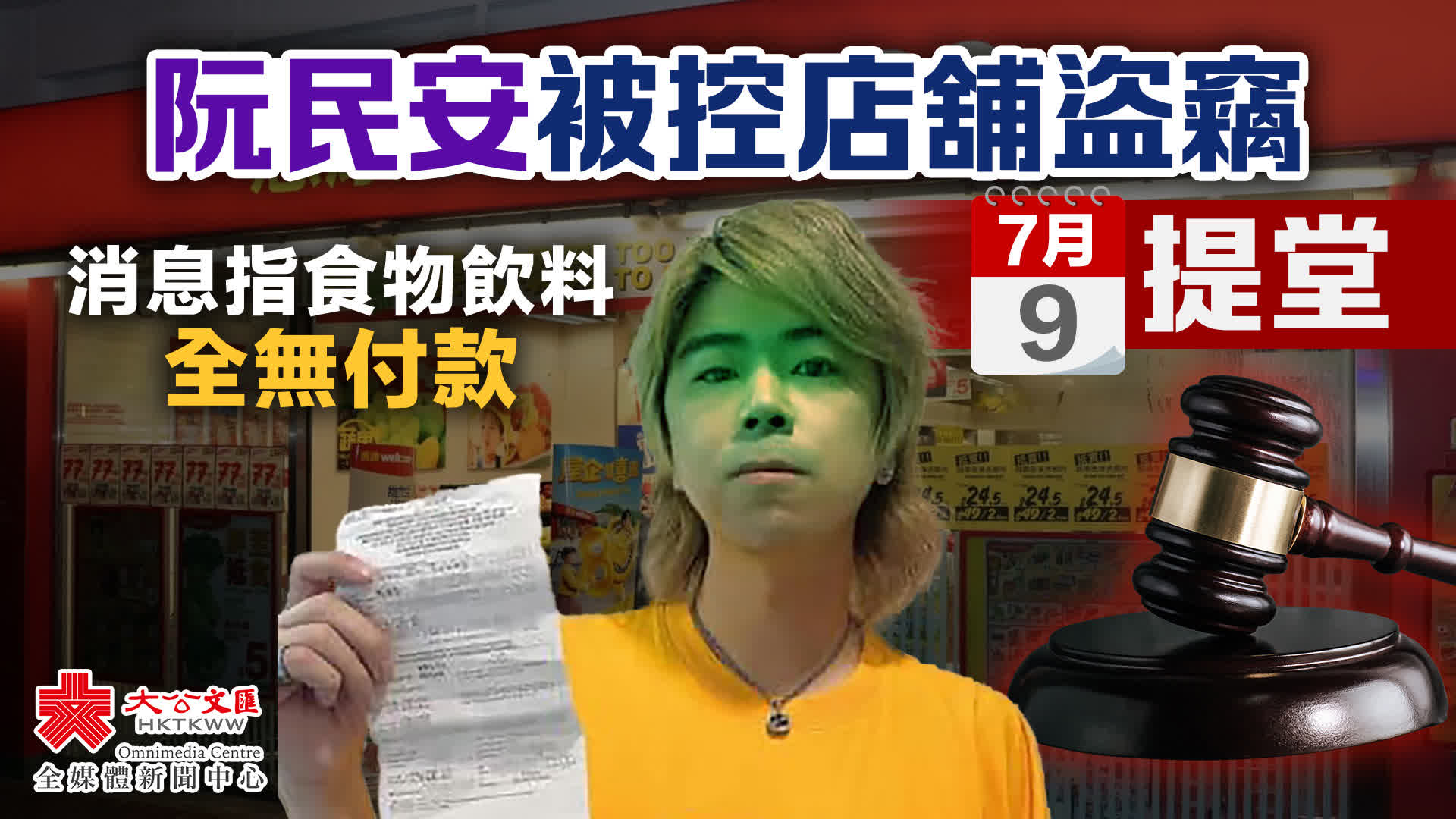 大公文匯全媒體報道,撐暴「奀星」阮民安昨日(18日)再度惹上官非,他在土瓜灣馬頭角道一間超級市場內涉嫌偷竊飲品及零食,價值約140元,遭警方當場截查拘捕。據了解,警方經調查後,相信他在超市拿取的貨品,全部未有付款,已落案控告他店舖盜竊罪,現時已獲准保釋候查,案件將於7月9日於九龍城裁判法院提堂。