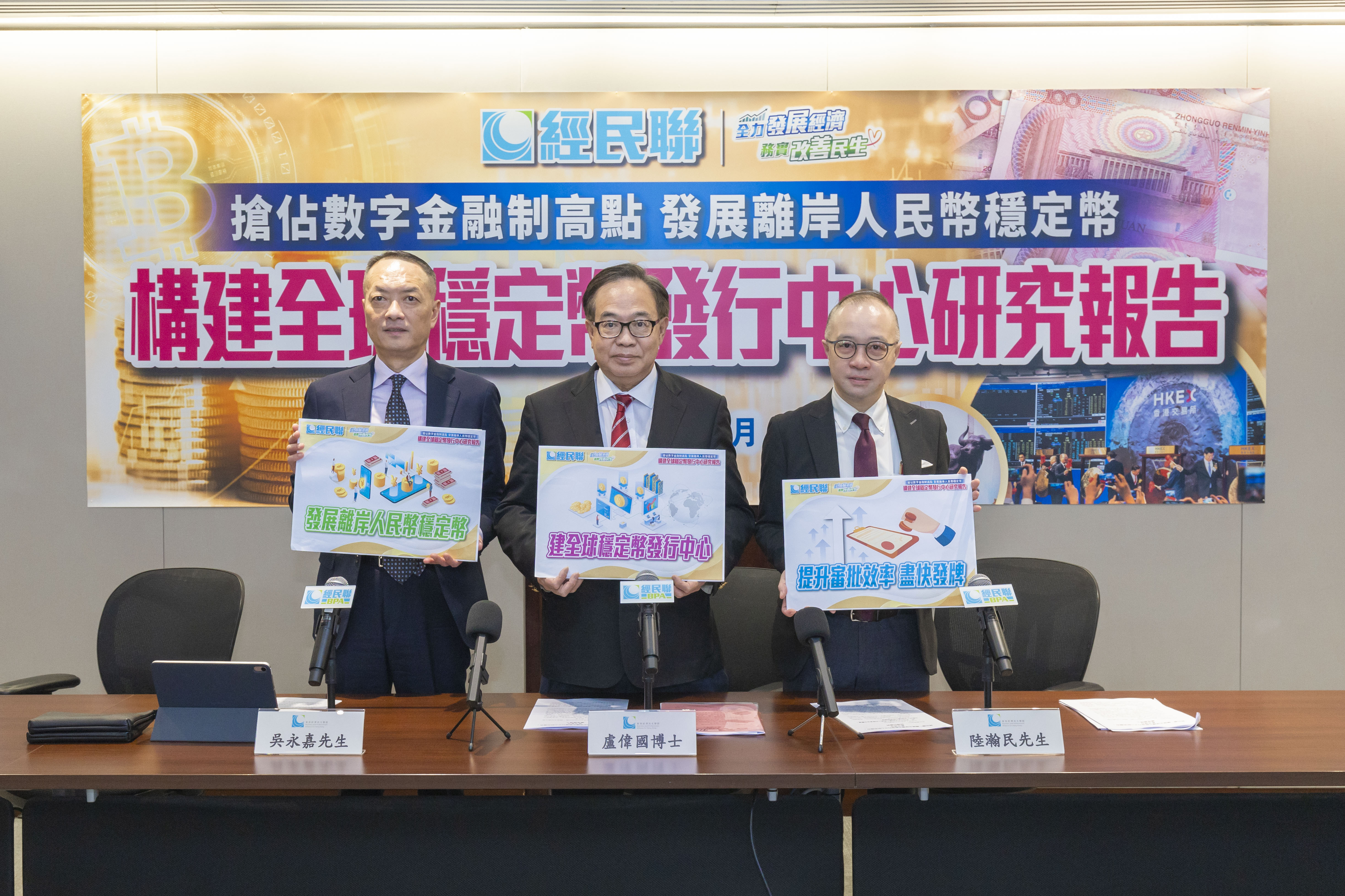 經民聯認為,香港作為國際金融中心及最大的離岸人民幣業務中心,應發揮「一國兩制」優勢,在穩定幣發展上搶佔制高點,發展離岸人民幣穩定幣,將香港建設成全球穩定幣發行中心。為此,經民聯深入研究,形成有關報告,提出以下六大建議。