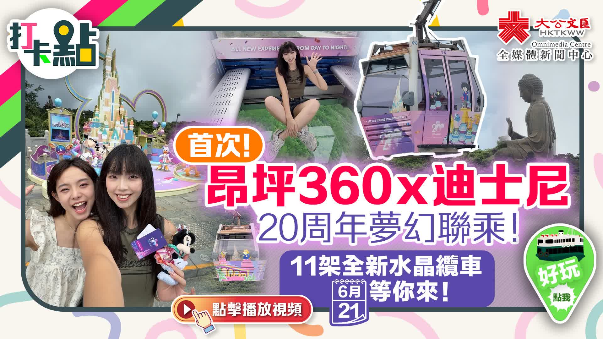 大公文匯全媒體報道,香港兩大人氣旅遊地標首度矚目合作——昂坪360將與香港迪士尼樂園度假區(香港迪士尼),由6月21日起至8月31日帶來「香港迪士尼樂園20周年預熱派對@昂坪360」,慶祝香港迪士尼20周年!趕緊跟着Yolanda和Gwen搶先體驗!