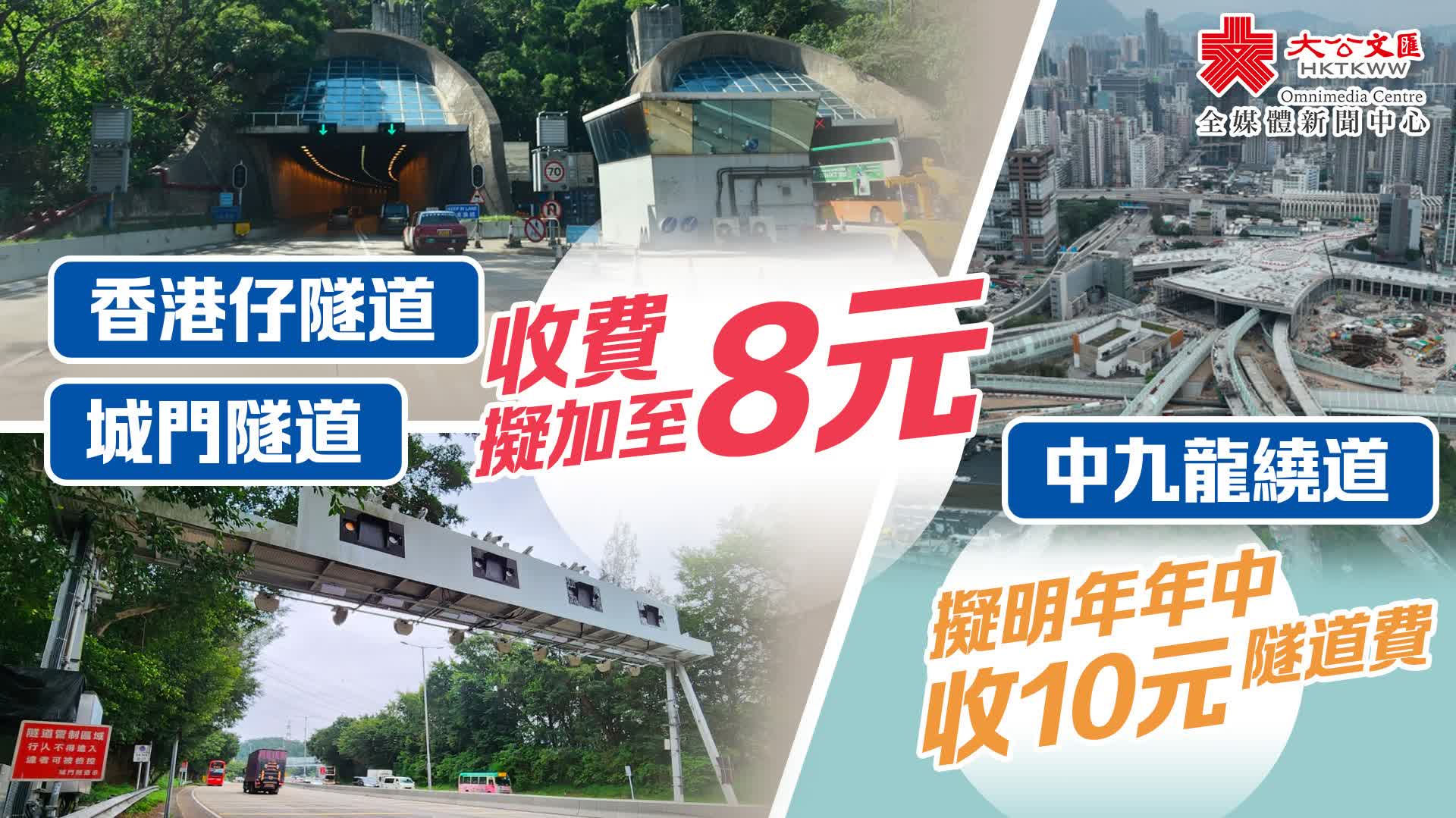 大公文匯全媒體報道,政府建議調整香港仔隧道及城門隧道收費,由現時的5元上調至8元,又建議中九龍繞道所有車輛全日統一收費10元。運輸及物流局局長陳美寶出席立法會交通事務委員會表示,香港仔隧道及城門隧道的收費加至8元,預料對交通管理的影響輕微,同時達致收支平衡。預計中九龍繞道全線開通後繁忙時段使用率接近飽和,需透過收費管理交通。