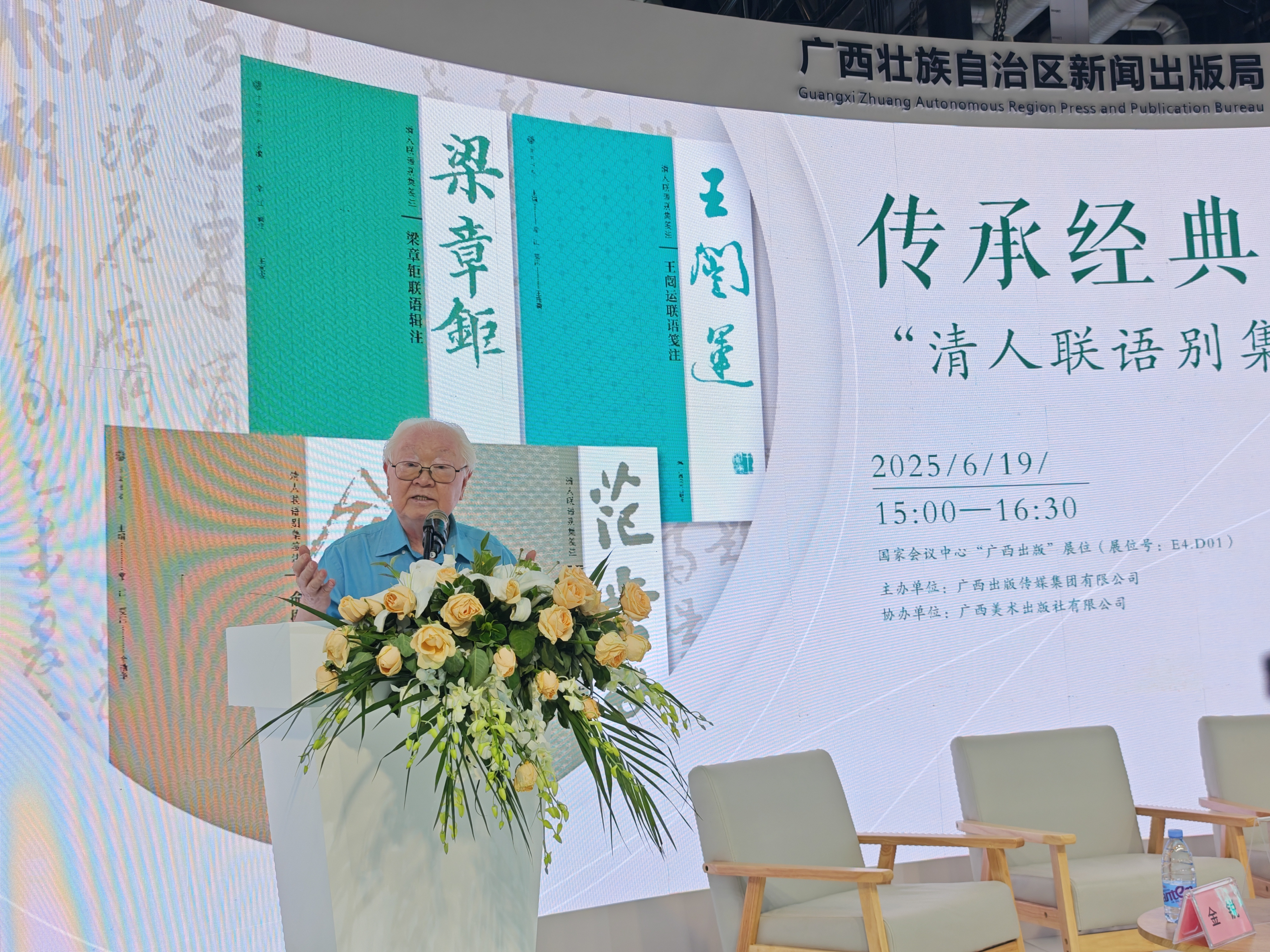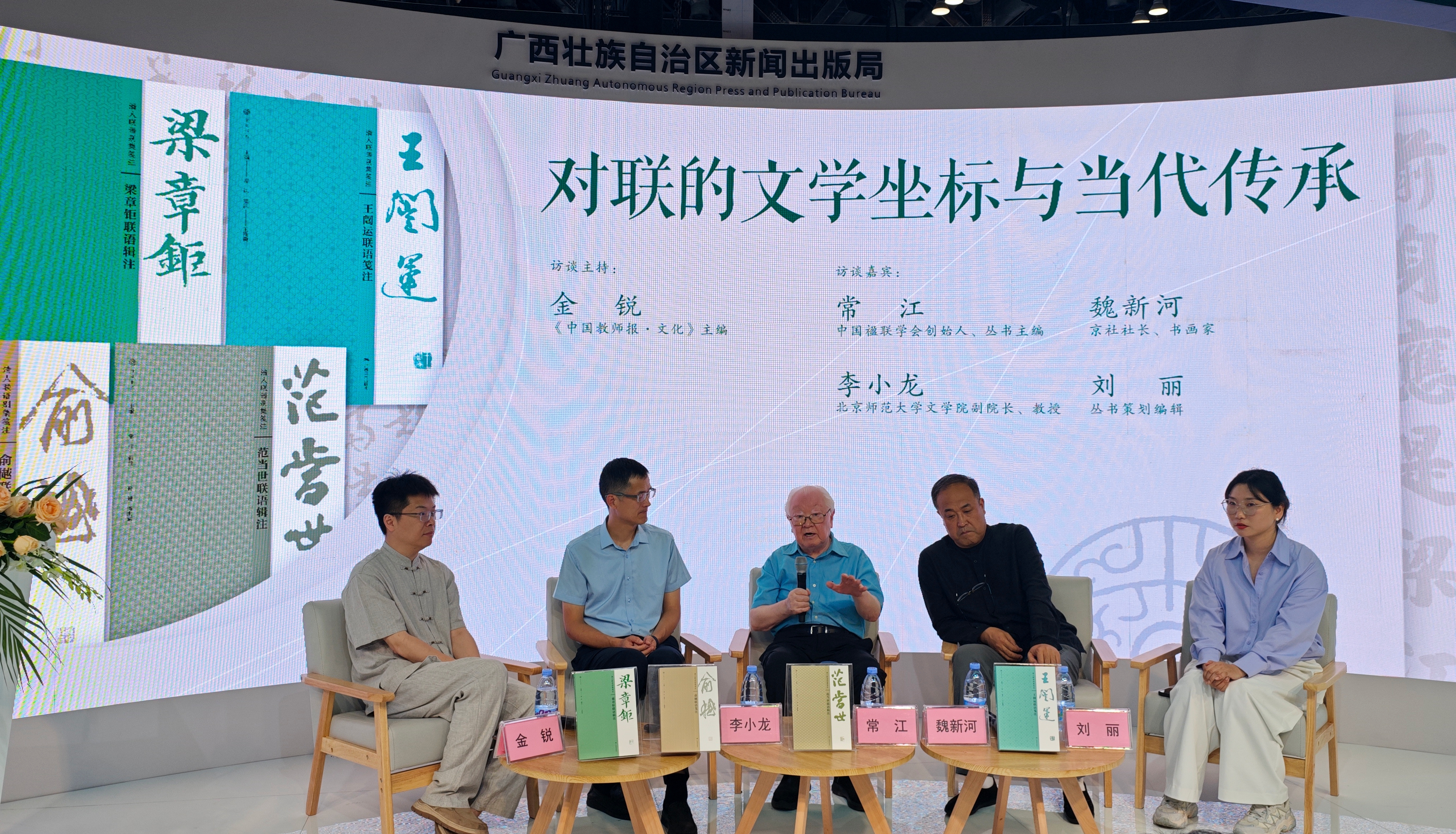 新書發布會由廣西出版傳媒集團有限公司主辦、廣西美術出版社有限公司協辦。以「傳承經典 聯結古今」為主題,會上特別設置了「對聯的文學坐標與當代傳承」專題訪談環節,由《中國教師報·文化》主編金銳主持。中國楹聯學會創始人常江,北京師範大學文學院副院長李小龍教授,中華詩詞學會前理事、書畫家魏新河等專家學者齊聚一堂,就清代楹聯的文學價值、歷史意義及當代傳承等話題展開深入探討。