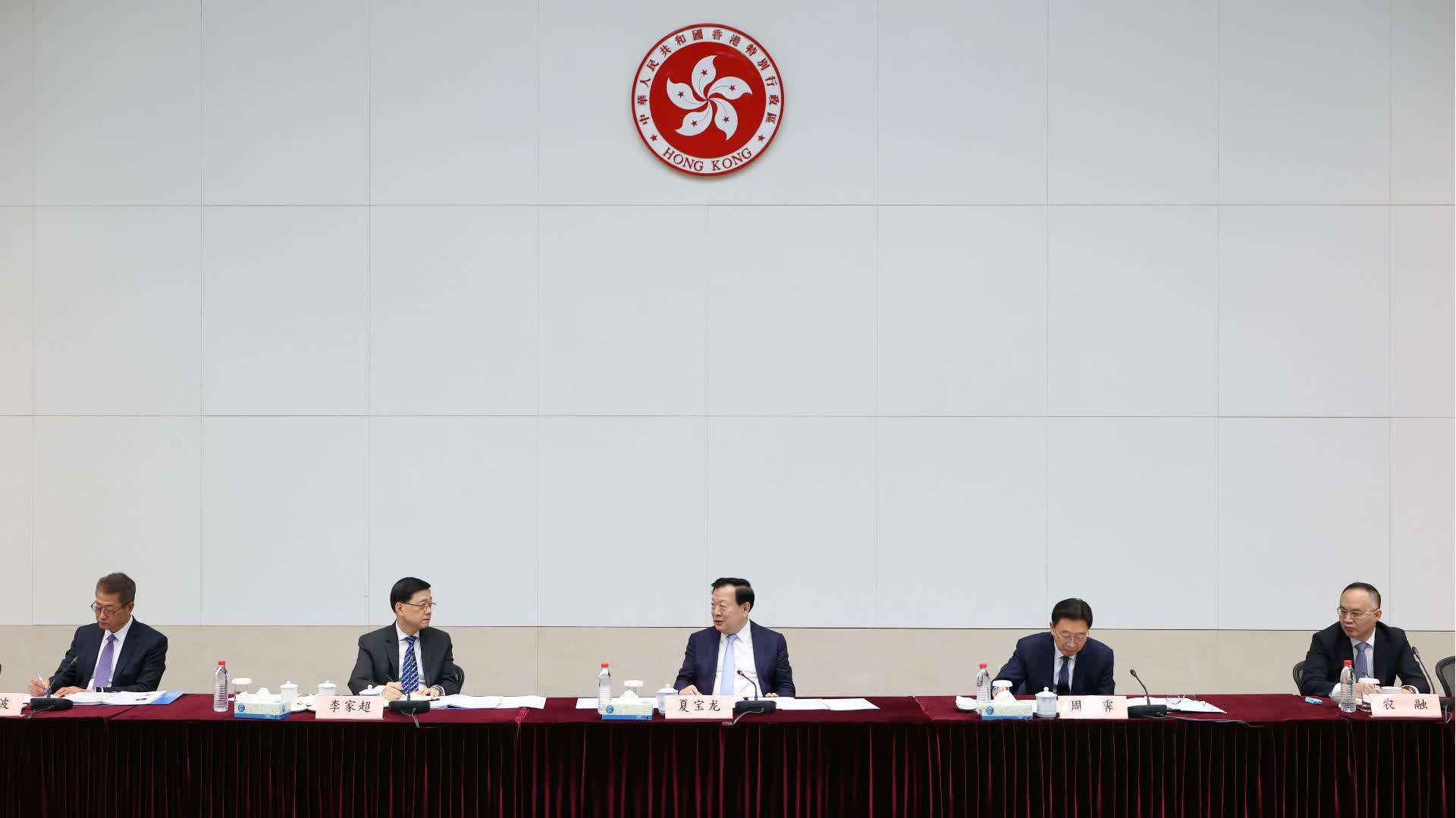 夏寶龍主任出席座談會,與香港工商界和金融界人士互動交流,出席者包括主要商會和企業代表。參與官員包括行政長官李家超、財政司司長陳茂波、財政司副司長黃偉綸、財經事務及庫務局局長許正宇和署理商務及經濟發展局局長陳百里博士。