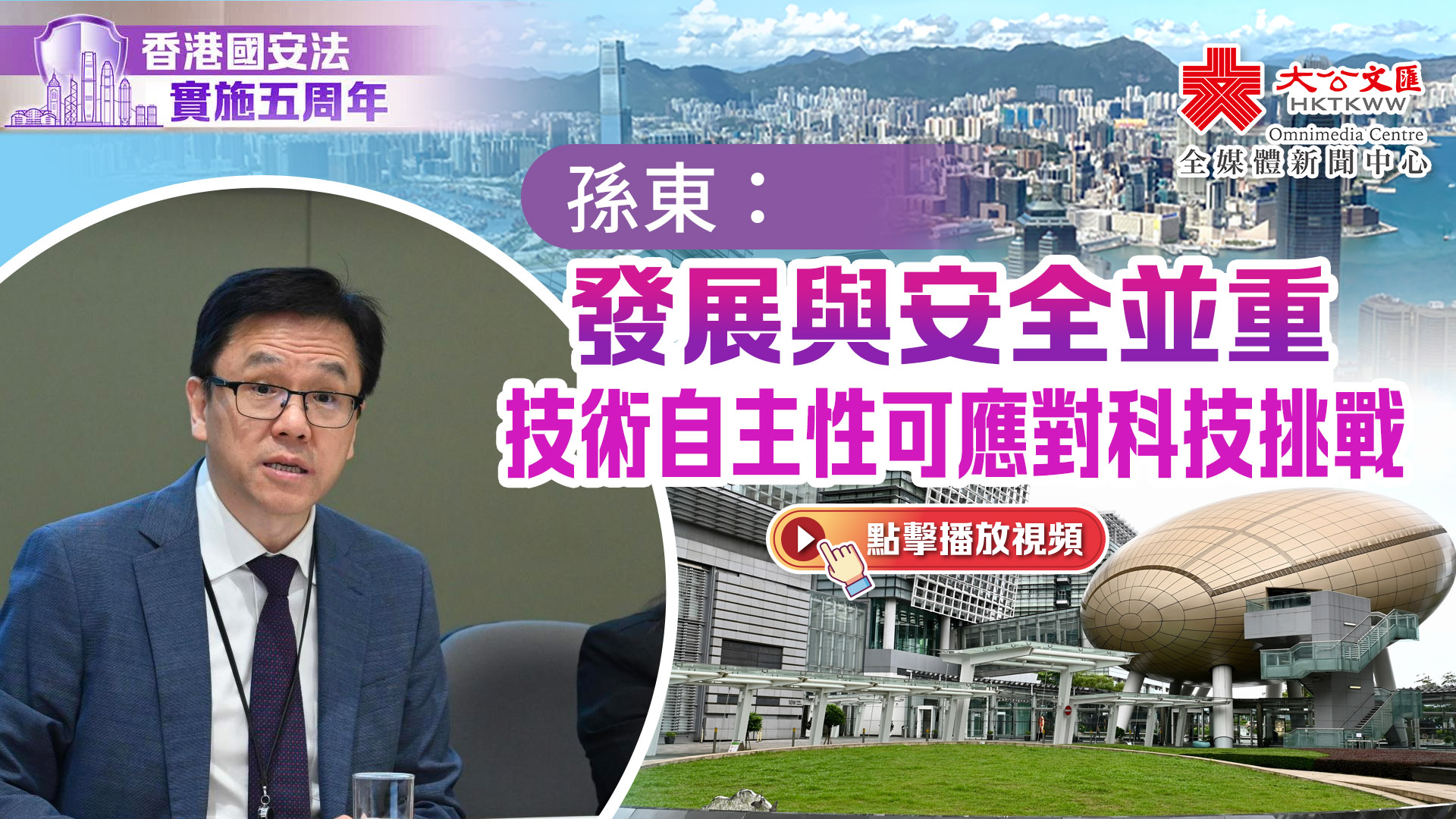 如今,本港正處於經濟轉型和科技創新的關鍵時期。孫東表示,在香港國安法所提供的穩固基礎上,創科局將繼續以科技為抓手,平衡發展與安全。面對複雜國際環境所帶來的潛在挑戰,孫東稱「打鐵還需自身硬」,最重要是建立好自身創科及工業體系並做好防護,以人才推動科技、以科技引領產業、以產業匯聚人才,促使發展科技與維護國安雙軌並進。