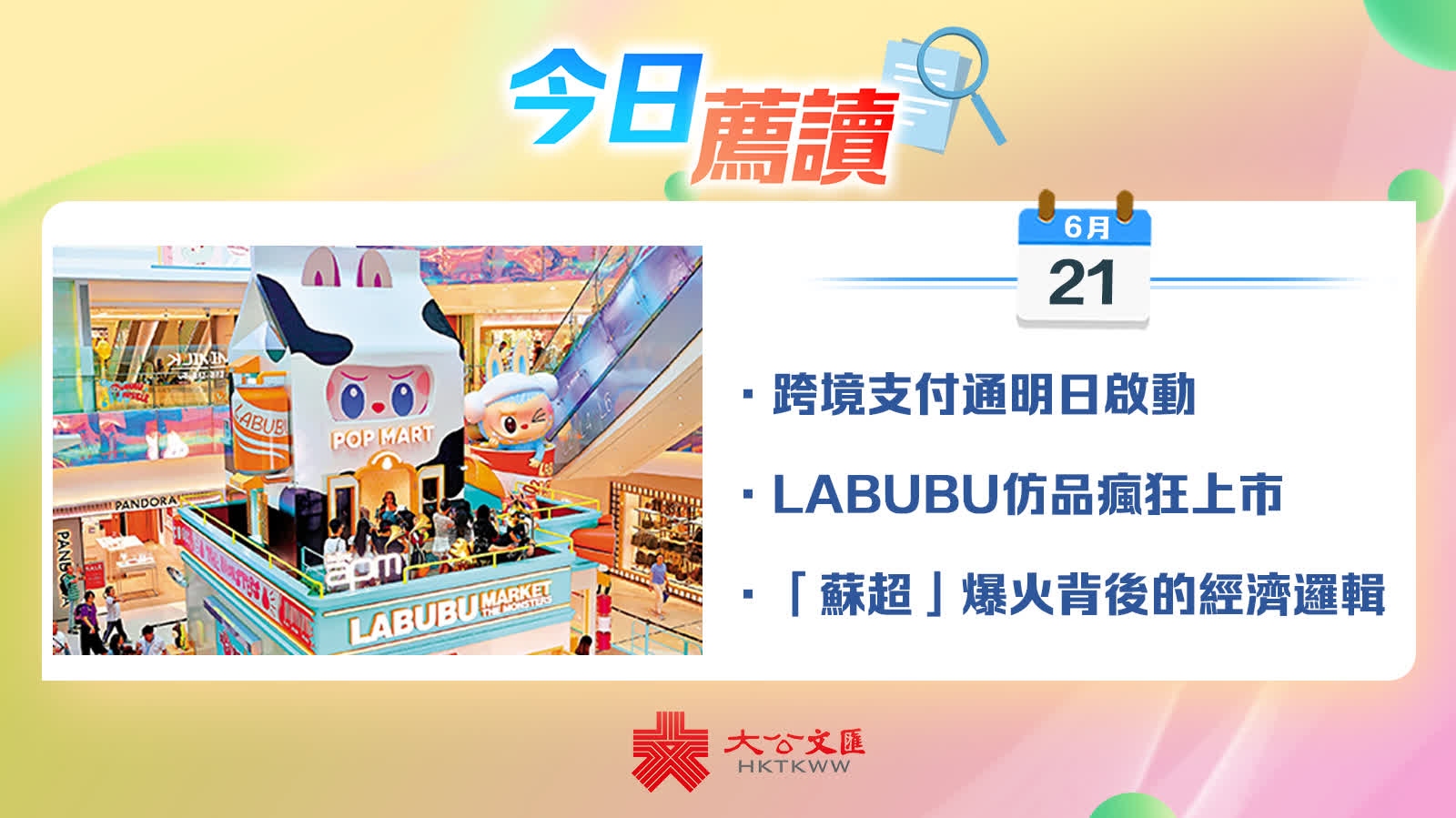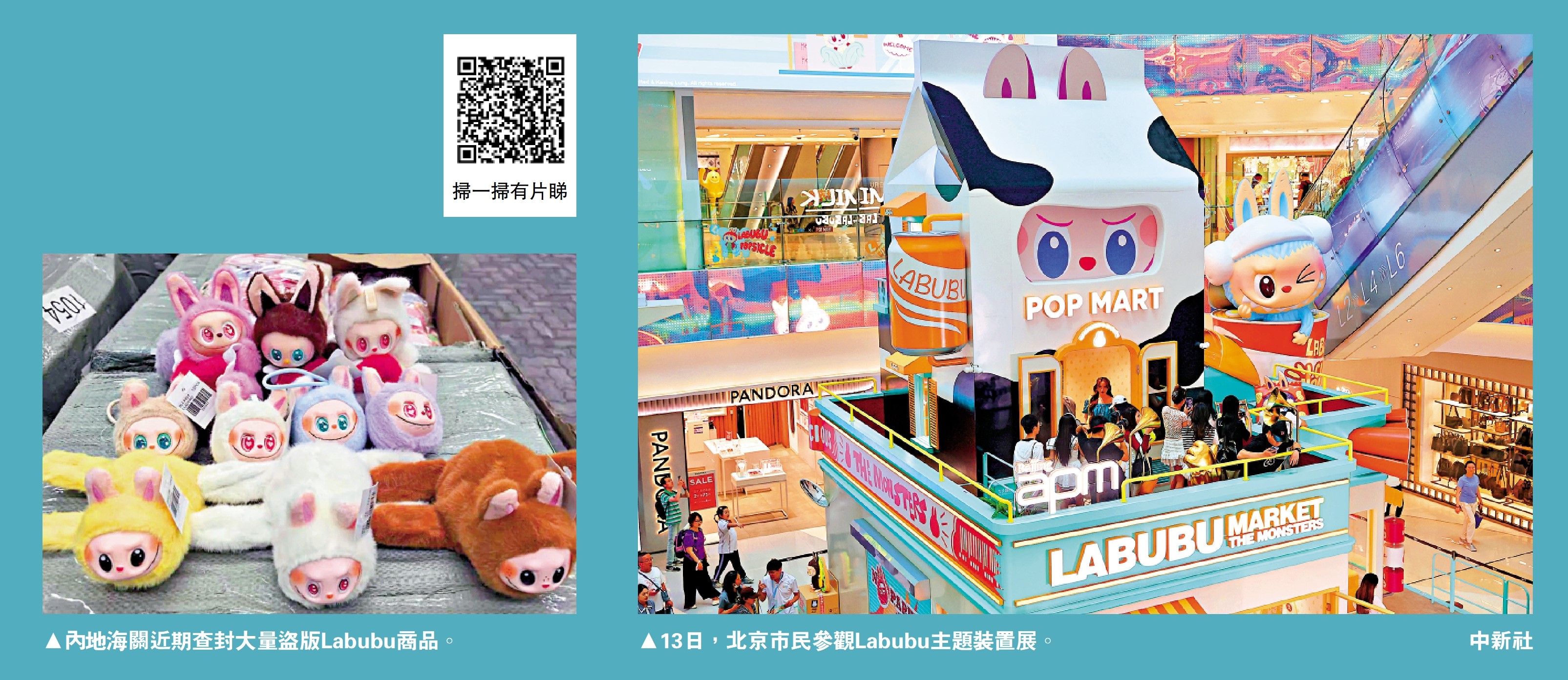 大公報A15版專題《正版Labubu難求 仿品瘋狂上市》報道,內地潮玩公司泡泡瑪特(Pop Mart)推出Labubu搪膠毛絨公仔,爆火之後炒至千元仍一「bu」難求。不少商家看準商機、「頂風作案」,順勢推出「1:1復刻」、「3D打印款」等各式盜版Labubu公仔,相關產品充斥海內外市場。點擊閲讀詳情>>