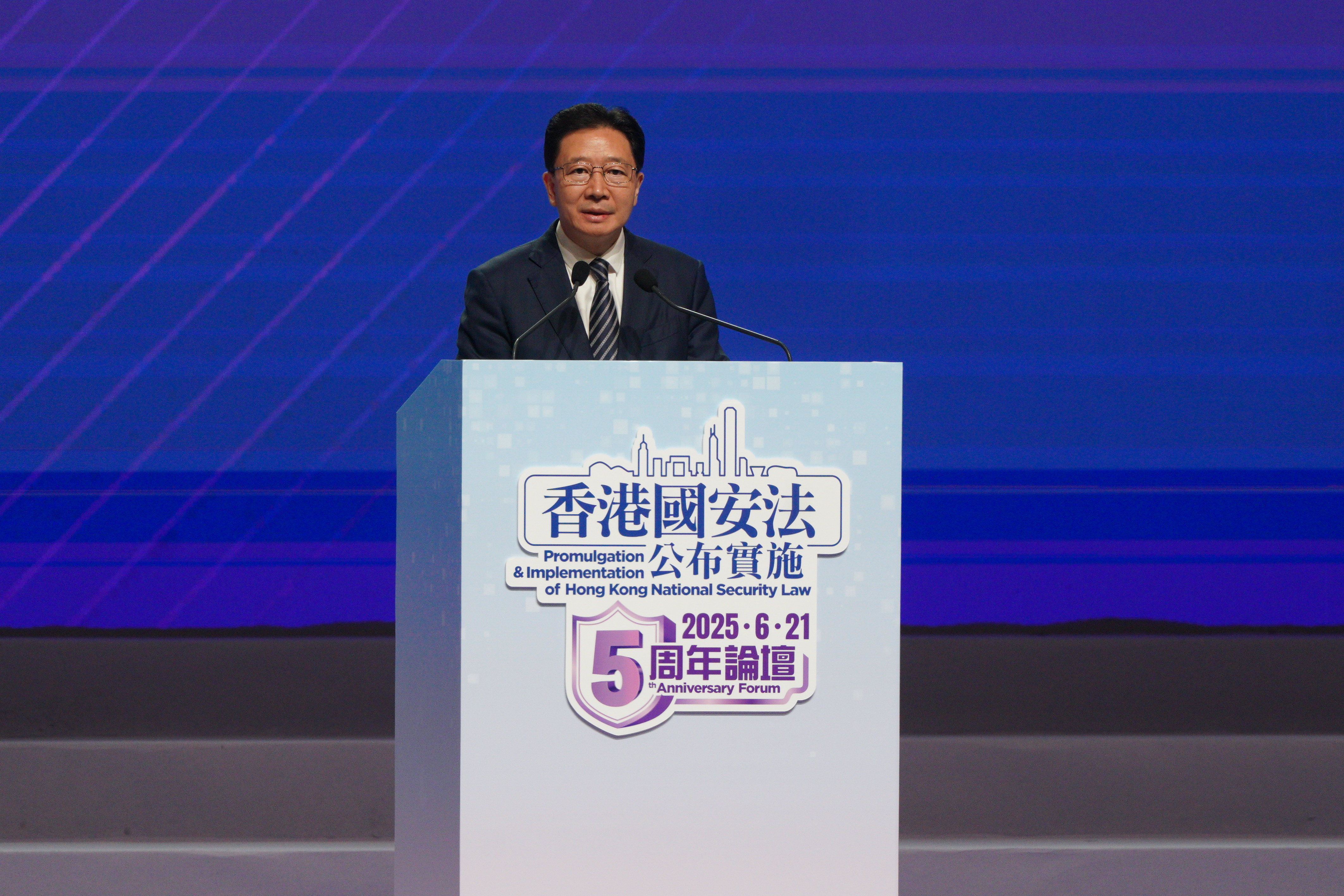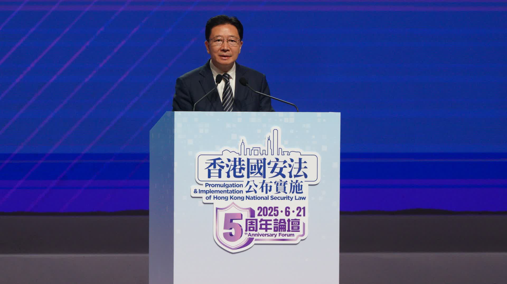 大公文匯全媒體報道,香港國安法公布實施五周年論壇今日(21日)在香港會議展覽中心大會堂舉行。中央人民政府駐香港特別行政區聯絡辦公室主任、香港特別行政區維護國家安全委員會國家安全事務顧問周霽在致辭時表示,香港國安法的制定實施,是「一國兩制」事業的重要里程碑。五年來,危害國家安全的犯罪行為依法受到有力打擊,市民珍惜的人權、自由得到了法律的有力保障;安全穩定的營商環境也得到了有力維護。如今的香港,安靜祥和、生機勃勃,令世人嚮往。