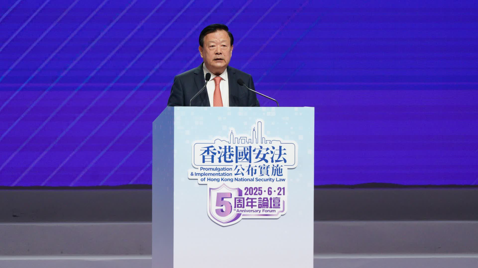大公文匯全媒體報道,6月21日上午,中央港澳工作辦公室主任、國務院港澳事務辦公室主任夏寶龍在香港會展中心出席香港國安法公布實施5周年論壇並致辭。