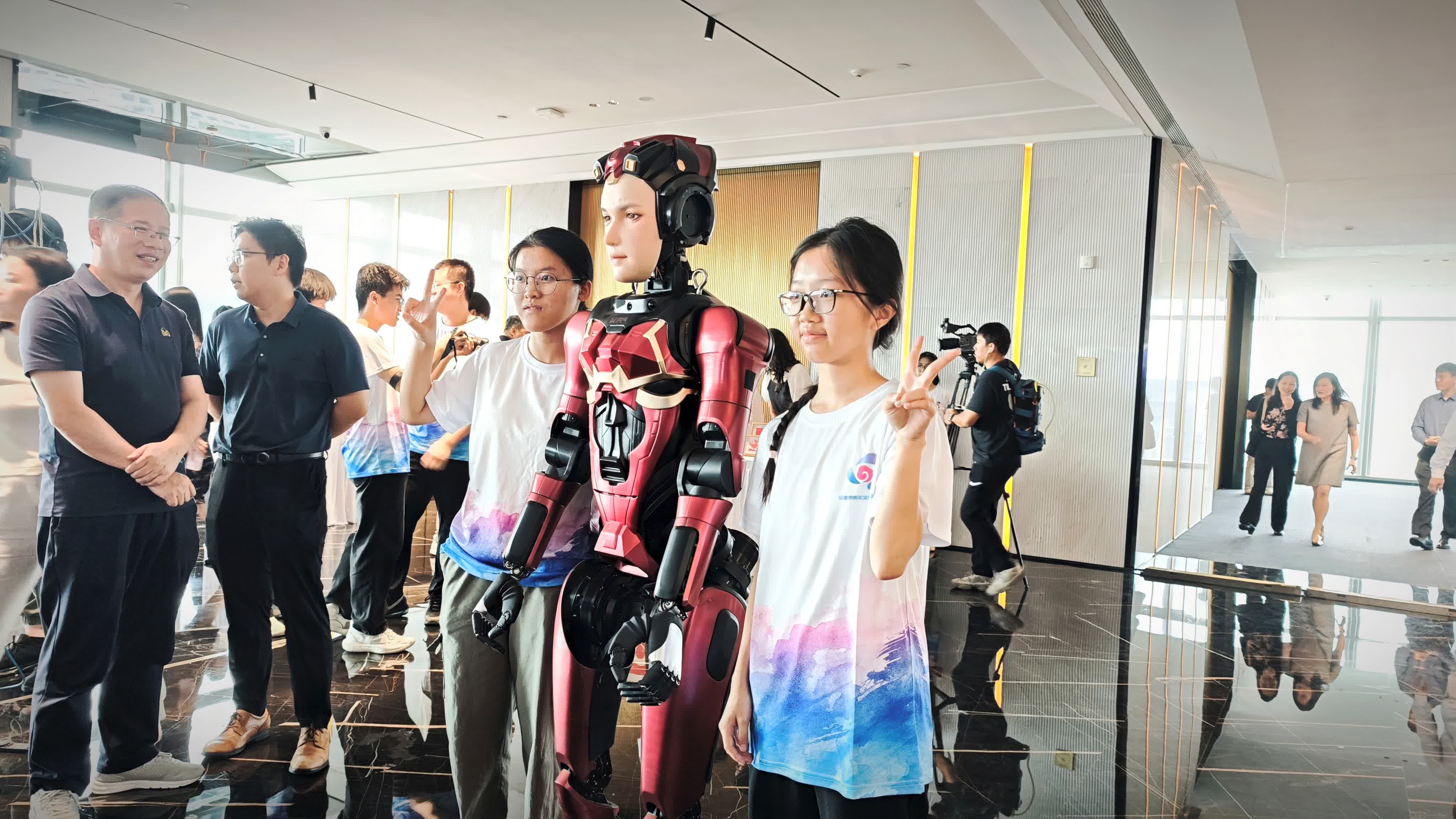 20日,在深港澳青年文化交流周的活動現場,數字華夏人形機器人夏瀾成為了焦點,吸引眾多港澳學生紛紛駐足打卡,展現出科技與文化交流碰撞的獨特魅力。