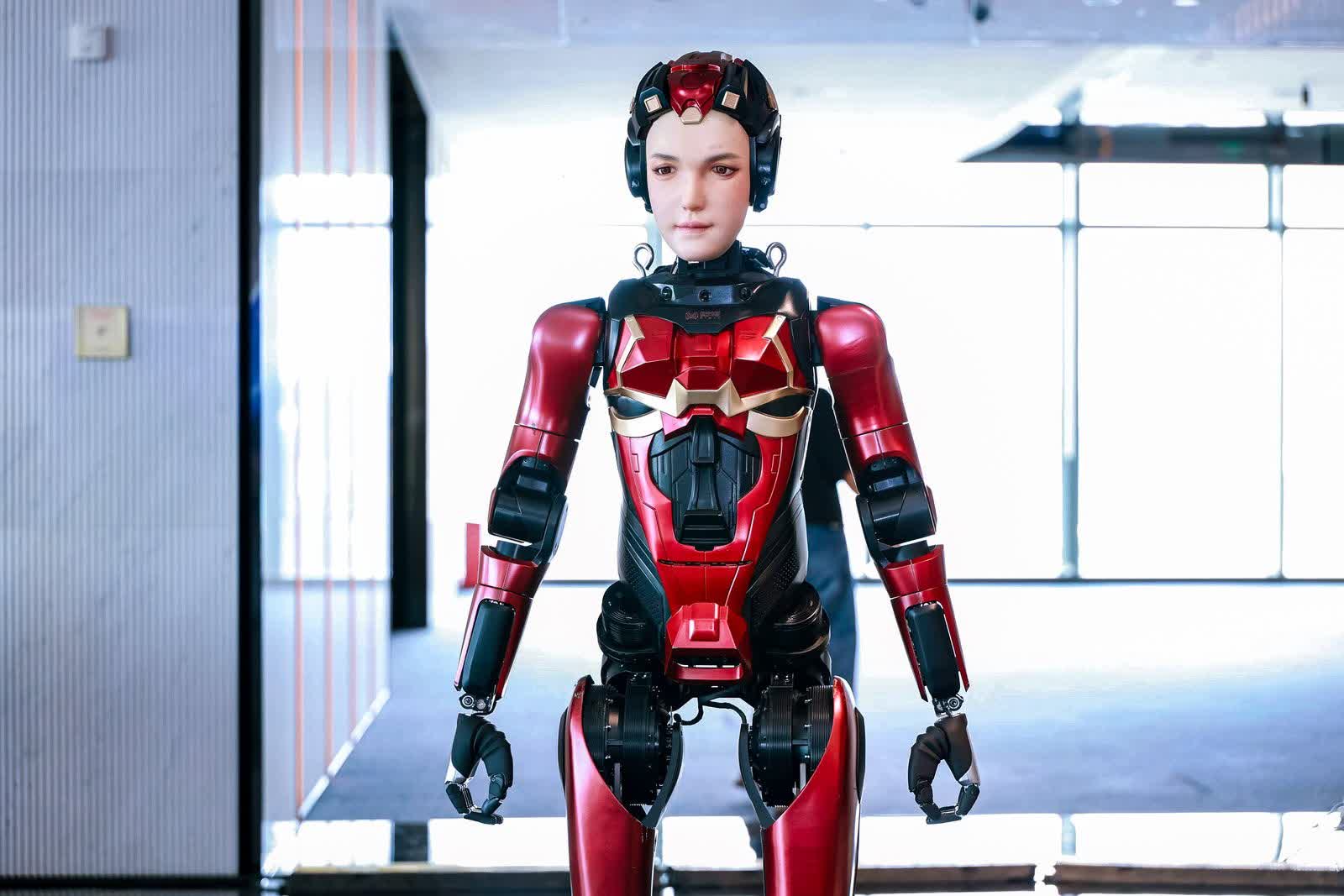 夏瀾由數字華夏(深圳)科技有限公司精心打造,自2024年8月發布以來,便憑藉其卓越的性能和獨特的設計在機器人領域嶄露頭角。這款機器人頭部配備29個電機,能夠精準模擬人類41塊面部肌肉的動作,通過實時算法生成豐富多樣的表情,目前已可實現7個種類共22種表情,無論是開心時的笑容、思考時的專注神情,還是驚訝時的表情,都能生動展現,彷彿擁有人類般的情感。在語言交互方面,夏瀾同樣表現出色,不僅能進行流暢的多輪語音對話,還能根據交流對象的情緒變化做出富有共情的反饋,真正做到了有溫度的人機交互。