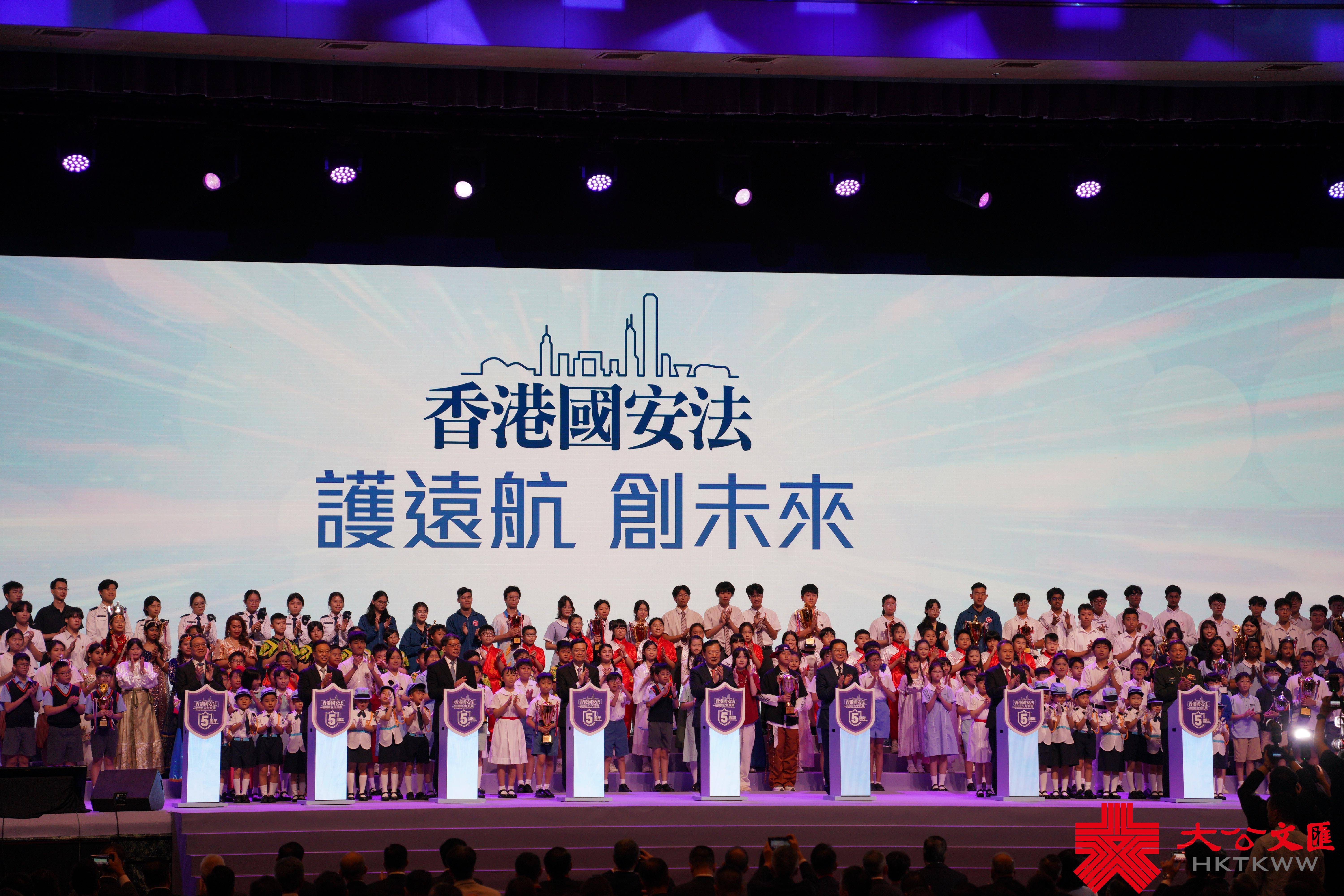 隨後進行3個比賽的頒獎禮,分別為全港學界國家安全常識挑戰賽、保安局青少年制服團隊國安問答比賽和社交媒體帖文創作比賽。嘉賓們上台為獲獎學生頒發獎項並合影留念。