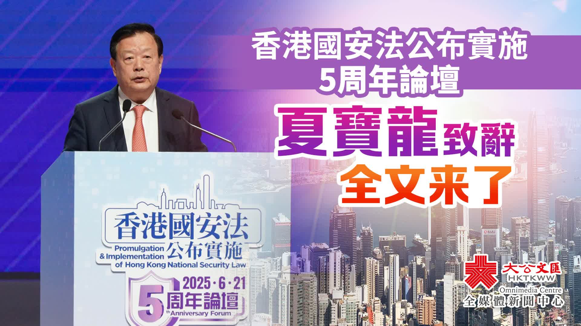 6月21日上午,香港特別行政區政府在香港會展中心舉辦香港國安法公布實施5周年論壇。香港社會各界近2000人參加活動。中央港澳工作辦公室主任、國務院港澳事務辦公室主任夏寶龍出席論壇致辭。以下為全文: