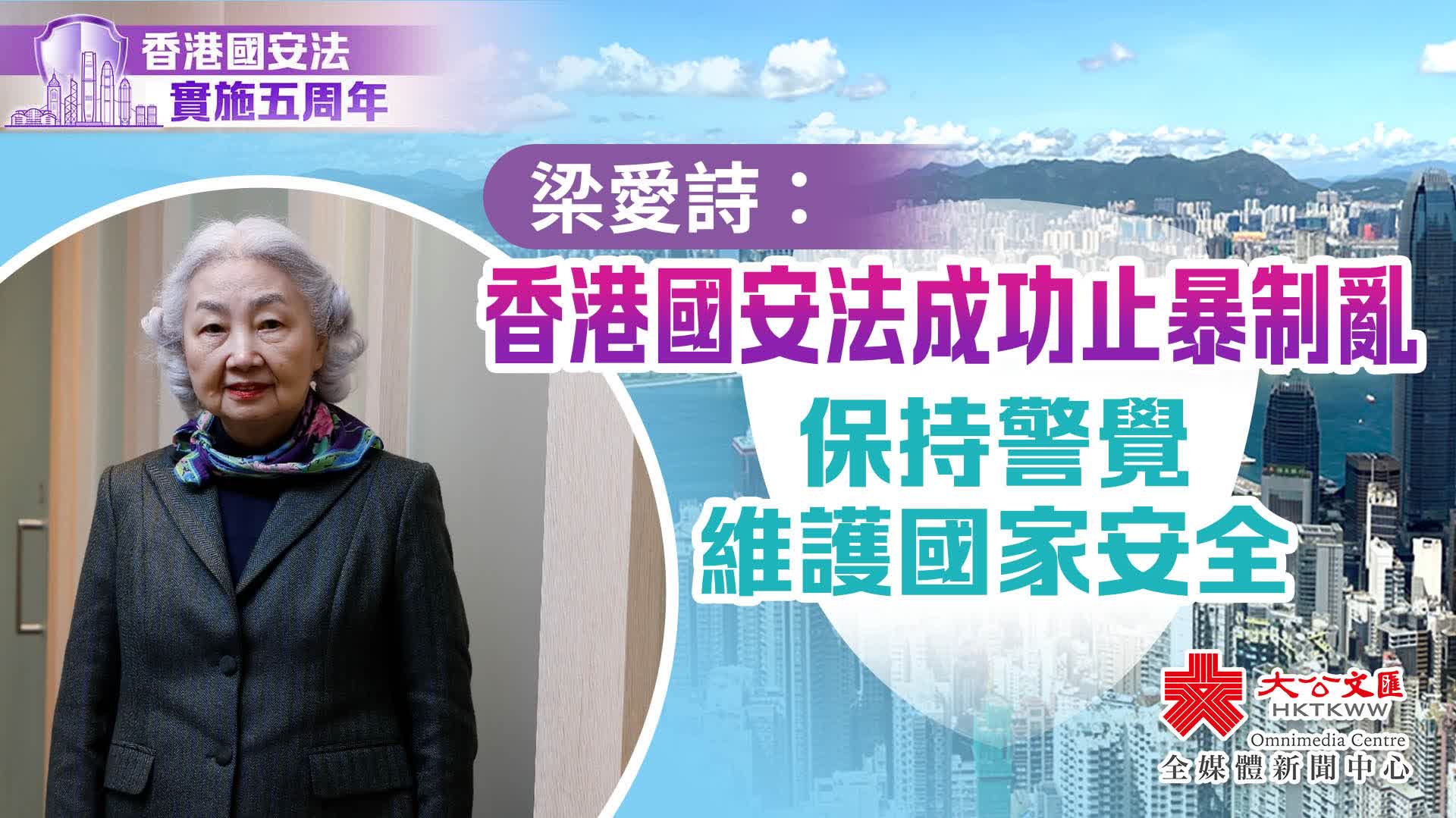 梁愛詩指出,當時許多不法分子製造混亂、擾亂秩序,導致立法會無法自己立法,基本法第二十三條立法也未執行好,所以需要中央指導,通過香港國安法維護香港的秩序。香港國安法的目的是止暴制亂,實施5年以來,能夠成功實現最初的目的,令香港恢復秩序,讓人們的生活恢復正常。