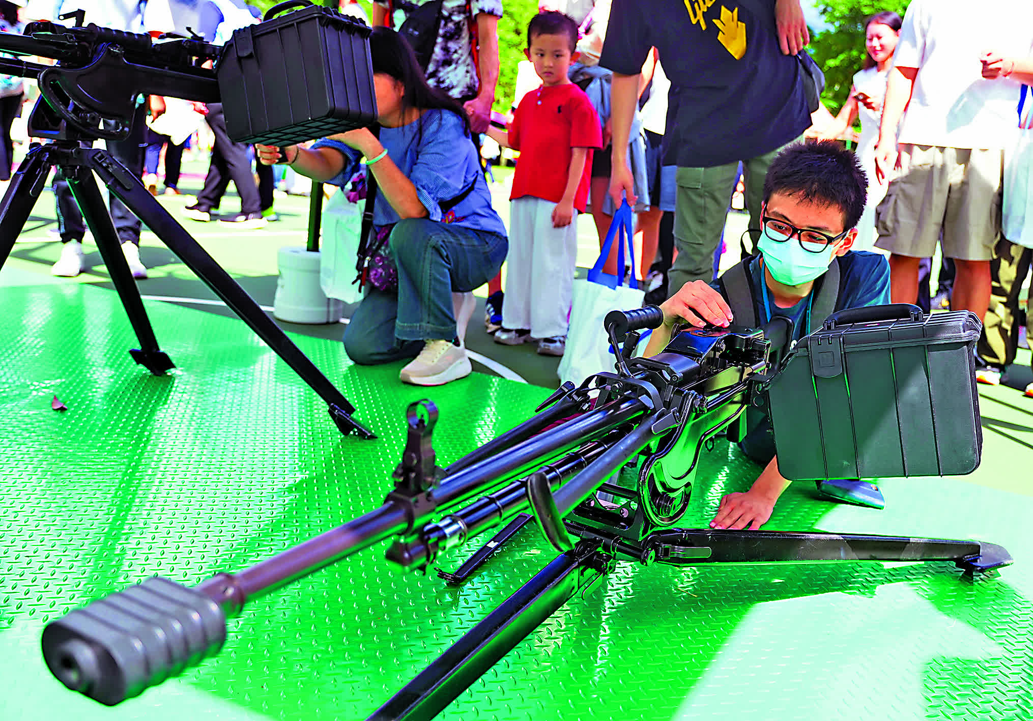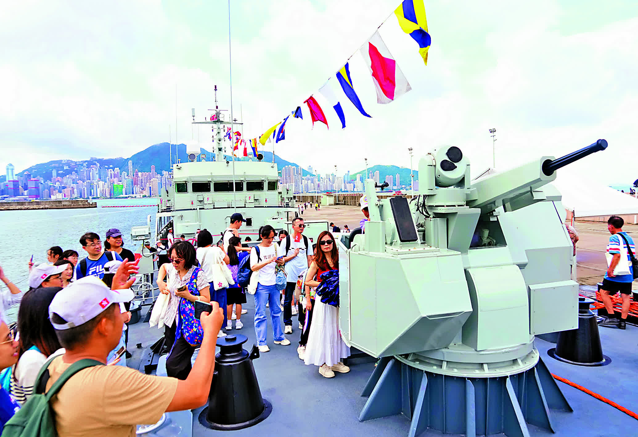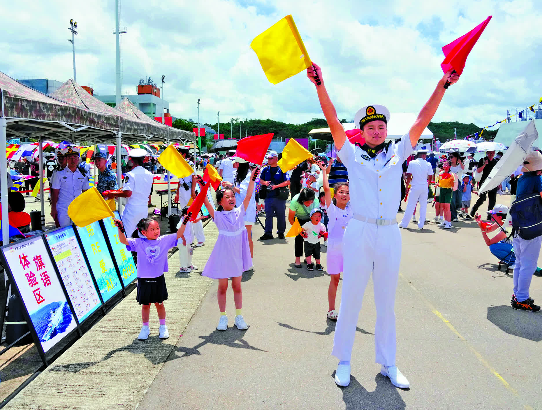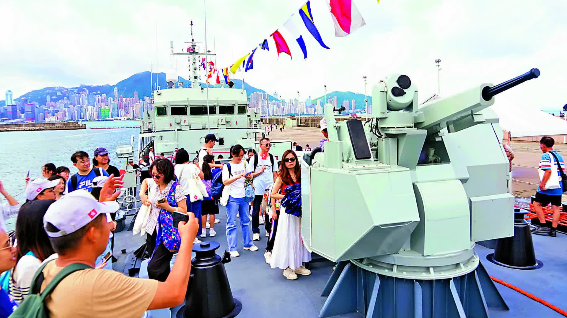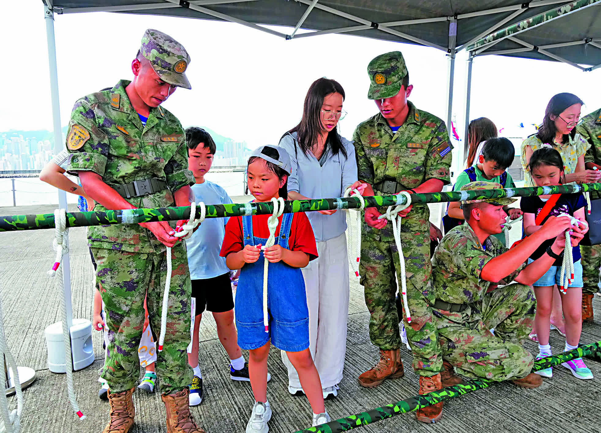 表演過後,不少市民迫不及待排隊登上軍艦,並爭相與官兵合照,有小朋友站在軍艦的炮位前,模仿瞄準的動作。在武器裝備展示區,許多市民體驗槍械、觀摩車輛、登上艦艇,向官兵學習打繩結、進行模擬射擊,現場氣氛熱烈。有小朋友在官兵教導下以正確姿勢手持鋼槍,打卡留念,激動之餘感嘆,「槍比想像中更重!」
