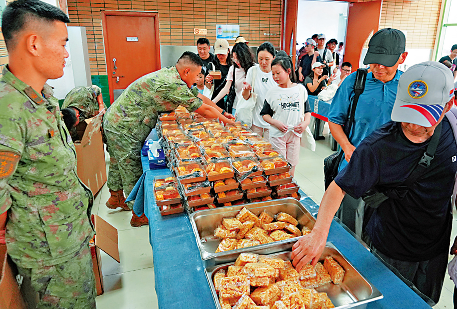 軍營內設有小食糕點品嘗區,入場市民在這裏可免費領取一盒糕點、水果和涼茶、椰汁等飲品,並在室內休息;午餐區免費提供炒白菜、番茄炒蛋等餸菜,中午時分,各個提供餐食的區域都吸引逾百名市民,希望品嘗到「軍營中的味道」。