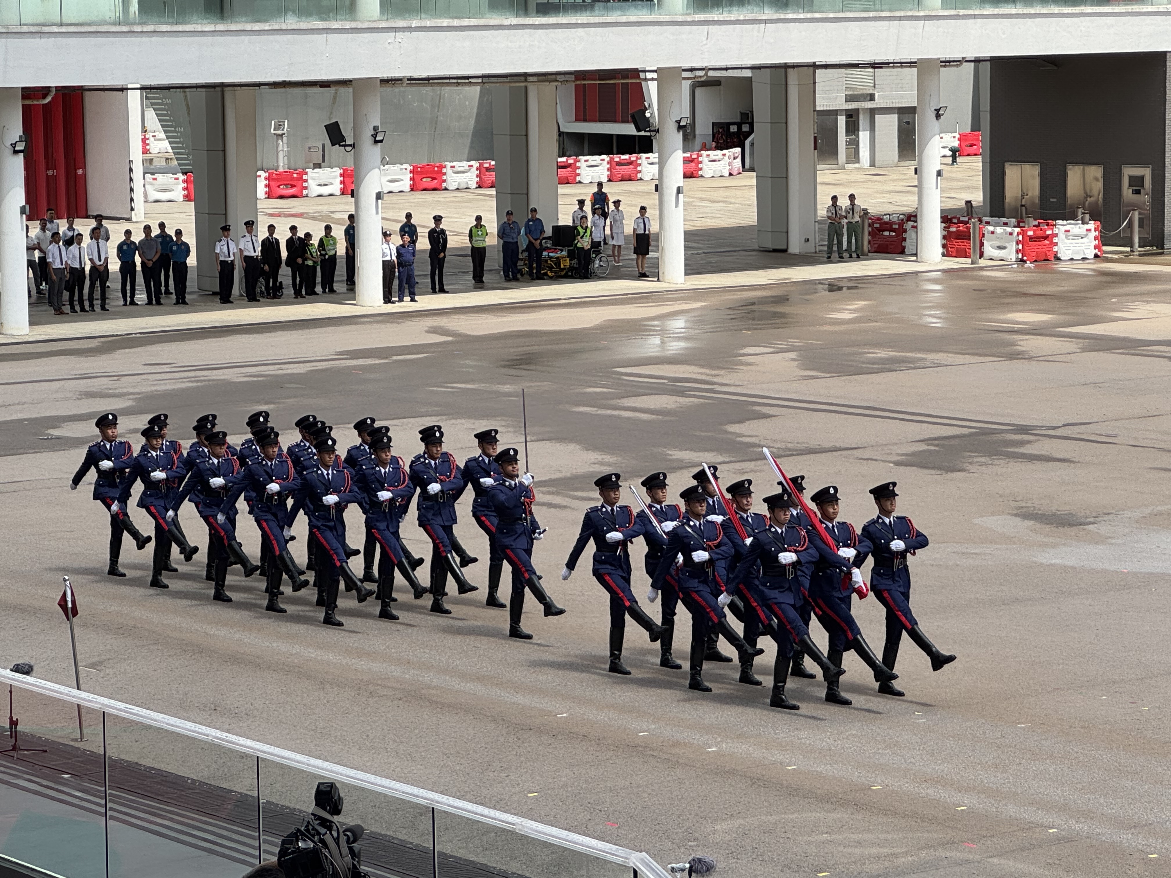 升旗儀式於上午10時許開始,由政務司司長陳國基主禮。儀仗隊率先入場,隨後入場的有入境事務處、香港海關、香港消防處、香港懲教署、香港警務處,接着由各青少年制服團體入場,他們着裝統一、步伐整齊,呈現出氣宇軒昂的神態。接着,消防處護旗方隊入場並行至升旗台前,進行升旗,現場全體人員面向國旗、區旗及消防旗肅立並奏唱國歌。政府飛行服務隊直升機在空中敬禮,及後香港警察院樂隊及香港警察樂隊少年團帶來演奏節目。