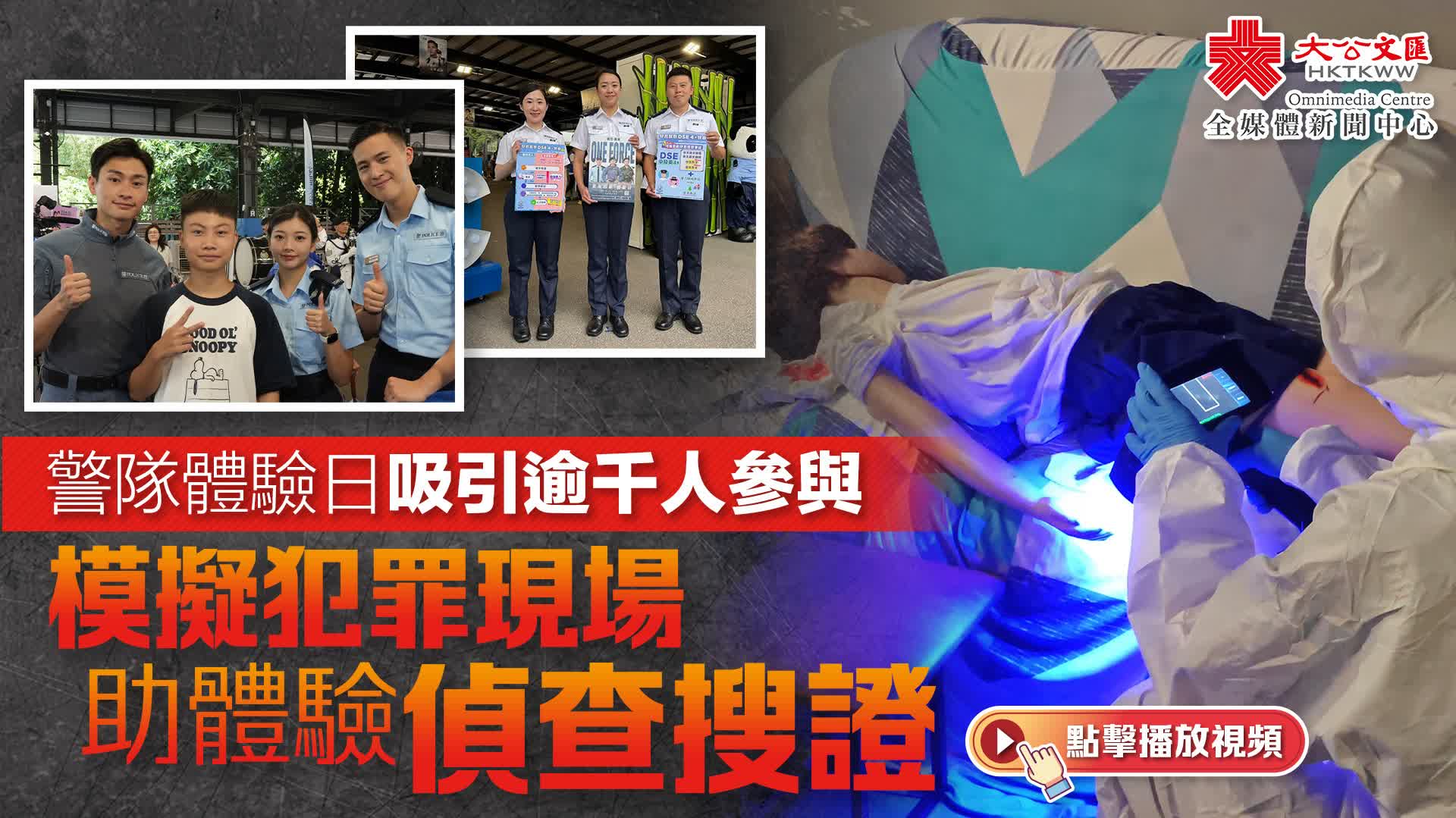 (大公文匯全媒體記者 王俊傑)警隊今日(22日)舉辦「警察招募·體驗日」,招募見習督察、警員及輔警。體驗日以「同行·致遠」為主題,寓意警隊團結一心,邁向未來。除了以往的靶場體驗等環節之外,今年首次邀請交通督導員、通訊員、銀樂隊隊員等後勤崗位擺設攤位,並且新增「鑑證先鋒」及「密室追兇」兩個互動體驗項目,讓參加者親身了解和體驗不同類型的警務工作。