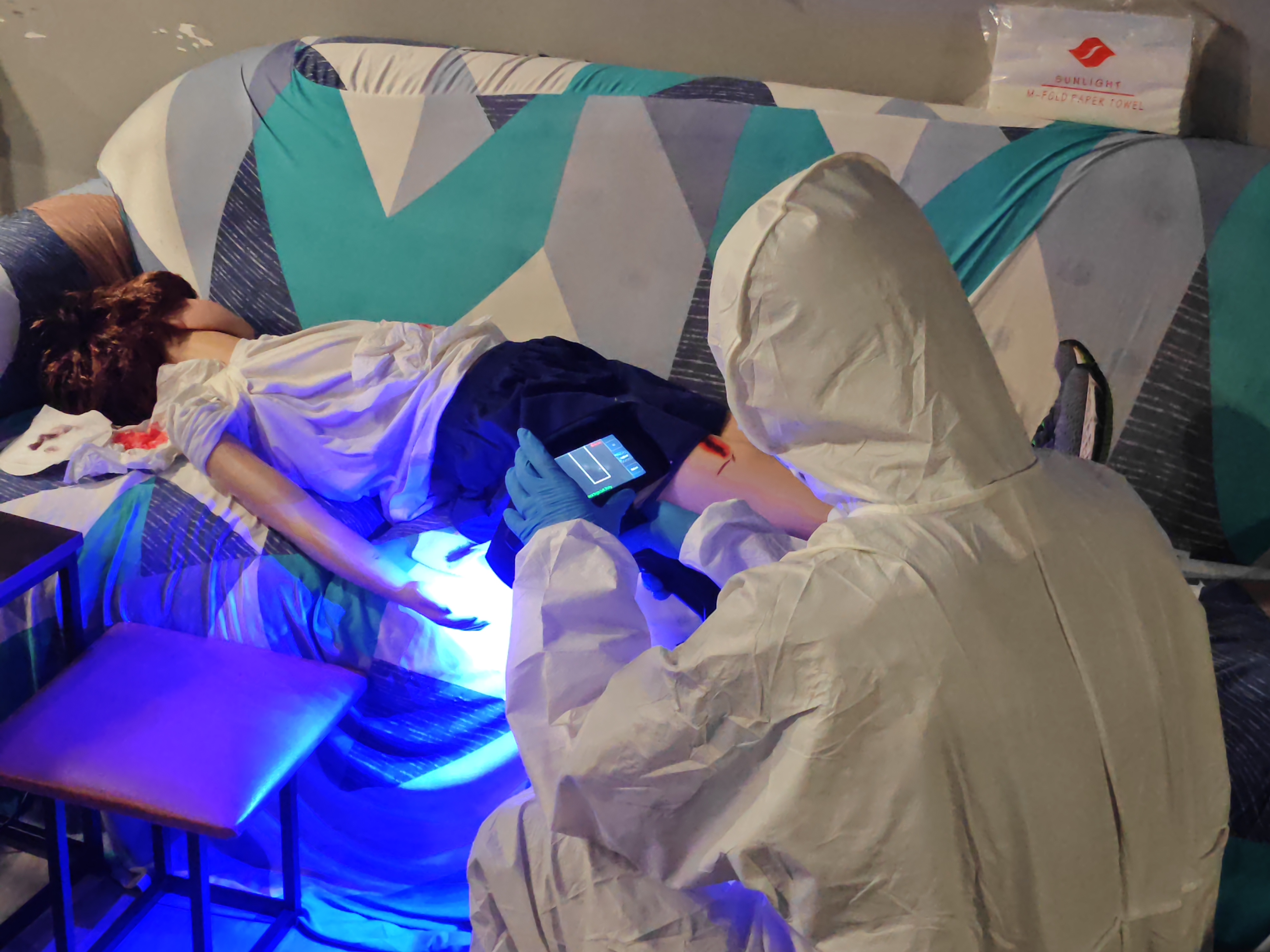 以「鑑證先鋒」為例,警隊模擬酒吧兇案現場,示範使用電子掃描儀和多波段搜索儀等裝備,採集指紋和血液等生物樣本。至於「密室追兇」,就模擬同居宿友捲入感情糾紛,需要從參加者從事主自殺的現場,找出幕後兇手。