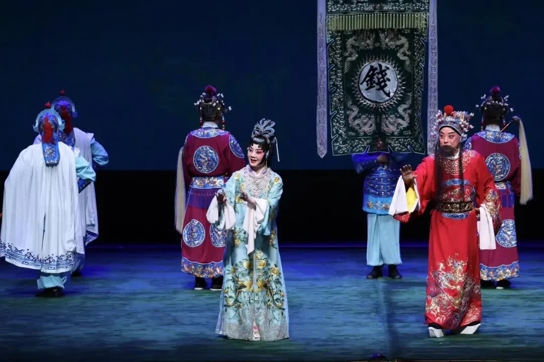 此外,吳越王宮、北宋儀仗、水陸戰場等戲劇環境,「水旗」「水幕」等變幻豐富、古今交織的舞台語彙,共同營造出波譎雲詭的歷史氛圍和大勢所趨、滾滾向前的主題意象,亦展現出國家京劇院嚴謹清新、大氣磅礴的藝術風格。