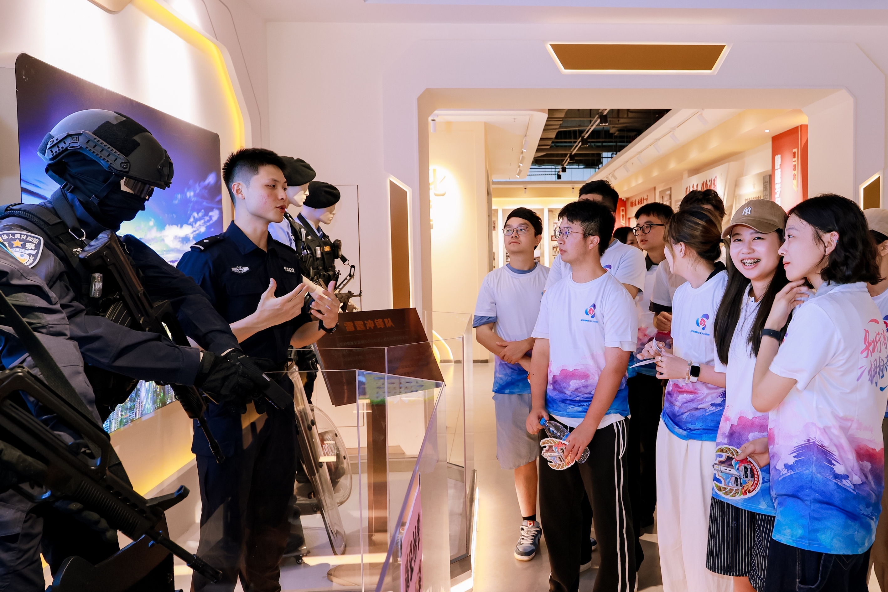 (大公文匯網記者 胡永愛)6月21日下午,2025年深港澳青年文化交流周系列活動迎來特別行程——100多名深港澳青年代表走進深圳少年警營活動中心,近距離感受深圳警務工作的科技化、專業化發展。來自嶺南大學的香港青年文銘熙在參訪後感嘆:「在這裏,我們不僅看到了警察的日常付出,更感受到科技給警務工作帶來的變化與變革。」