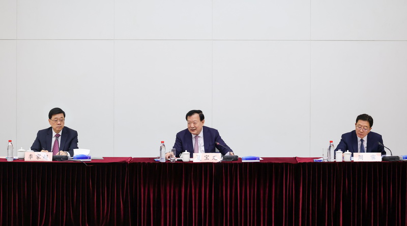 上午,夏寶龍由行政長官李家超和民政及青年事務局局長麥美娟陪同,與十八區區議會主席和區議員代表舉行座談會,聽取地區工作匯報。