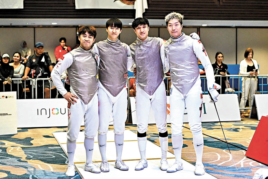 (香港文匯報 記者 張發兒)2025亞洲劍擊錦標賽昨日煞科,男花港隊在4強面對日本隊,在一度領先40:33的情況下,「守尾門」的劍神張家朗卻以3:12大敗予飯村一輝,最終以43:45反勝為敗,但仍可摘得一面銅牌。女子重劍隊則在4強以31:45不敵國家隊,刺走銅牌。