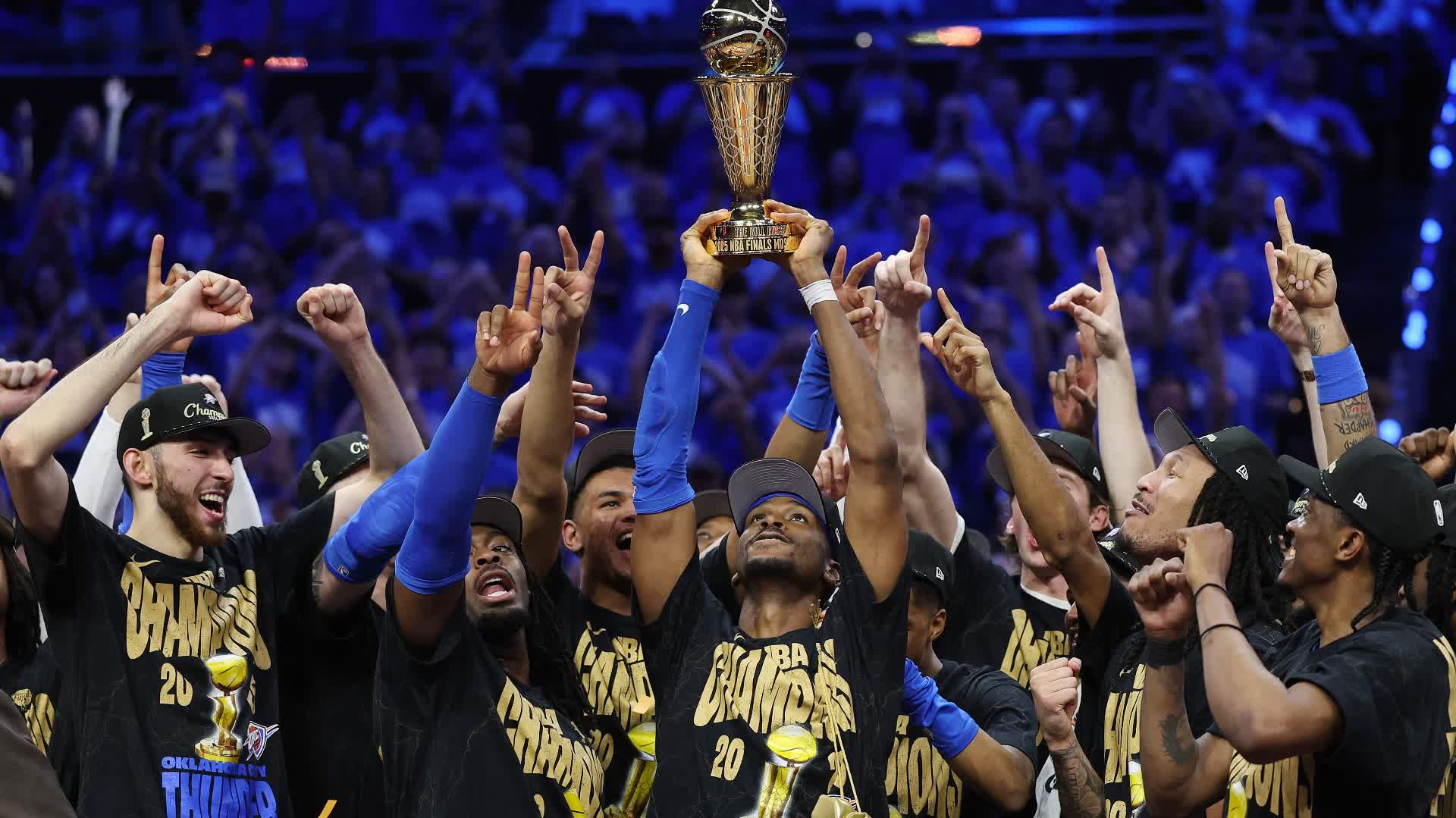 雷霆奪冠後,主場徹底沸騰,這是俄克拉荷馬城首次迎來NBA總冠軍。雷霆上一次晉級總決賽是在2011-2012賽季,彼時隊中擁有並稱「三少」的杜蘭特、威斯布魯克、哈登,當年的青年軍儘管未能奪冠,但表現令人眼前一亮,日後幾人也都成長為聯盟MVP級明星。