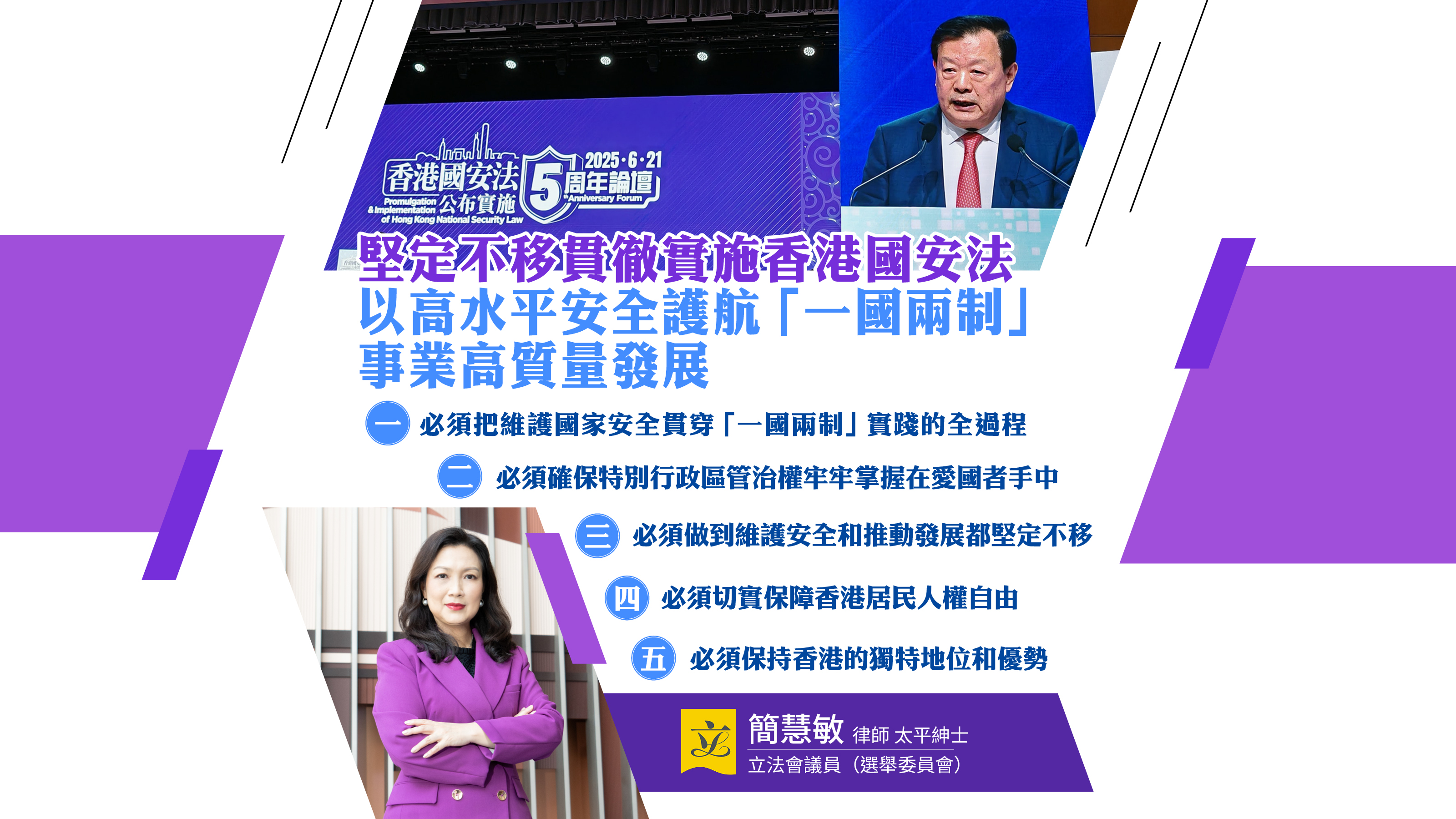 6月21日,筆者出席《香港國安法》公布實施五周年論壇。中央港澳辦主任、國務院港澳辦主任夏寶龍在開幕典禮主旨致辭中強調,《香港國安法》是捍衛一國兩制、維護香港繁榮穩定的守護神,是一部具有重大歷史意義和現實意義的好法律。他表示,香港維護國家安全面臨的形勢仍然複雜嚴峻,內外環境正發生深刻變化,香港要以總體國家安全觀為指引,實現香港更好發展,並就此提出5個必須:1. 必須把維護國家安全貫穿「一國兩制」實踐的全過程;2. 必須確保特別行政區管治權牢牢掌握在愛國者手中;3. 必須做到維護安全和推動發展都堅定不移;4. 必須切實保障香港居民人權自由;5. 必須保持香港的獨特地位和優勢。