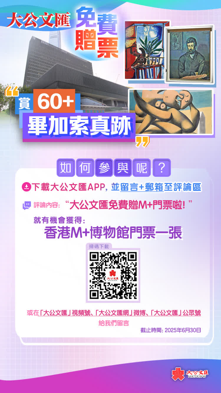 來自內地的讀者,只需下載大公文匯APP,並截圖給我們,就有機會獲得香港M+博物館門票一張。請在評論區留下圖片和您的聯繫方式。