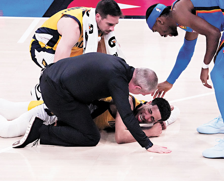 這邊廂雷霆球員高興地慶祝奪冠,另一邊廂「搶七」失敗的溜馬則盡顯悲情,因當家球星夏利畢頓在首節比賽中疑似觸傷阿基里斯腱退賽,在幾近肯定要缺席來季大部分比賽下,看來溜馬來季捲土重來的機會已不大。