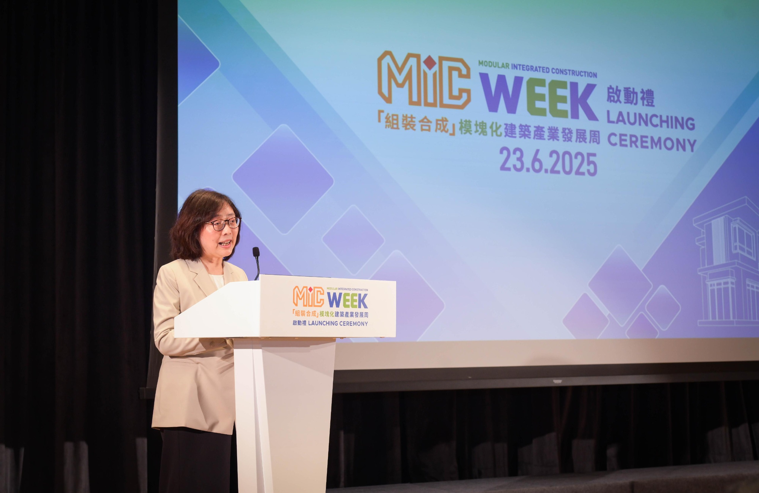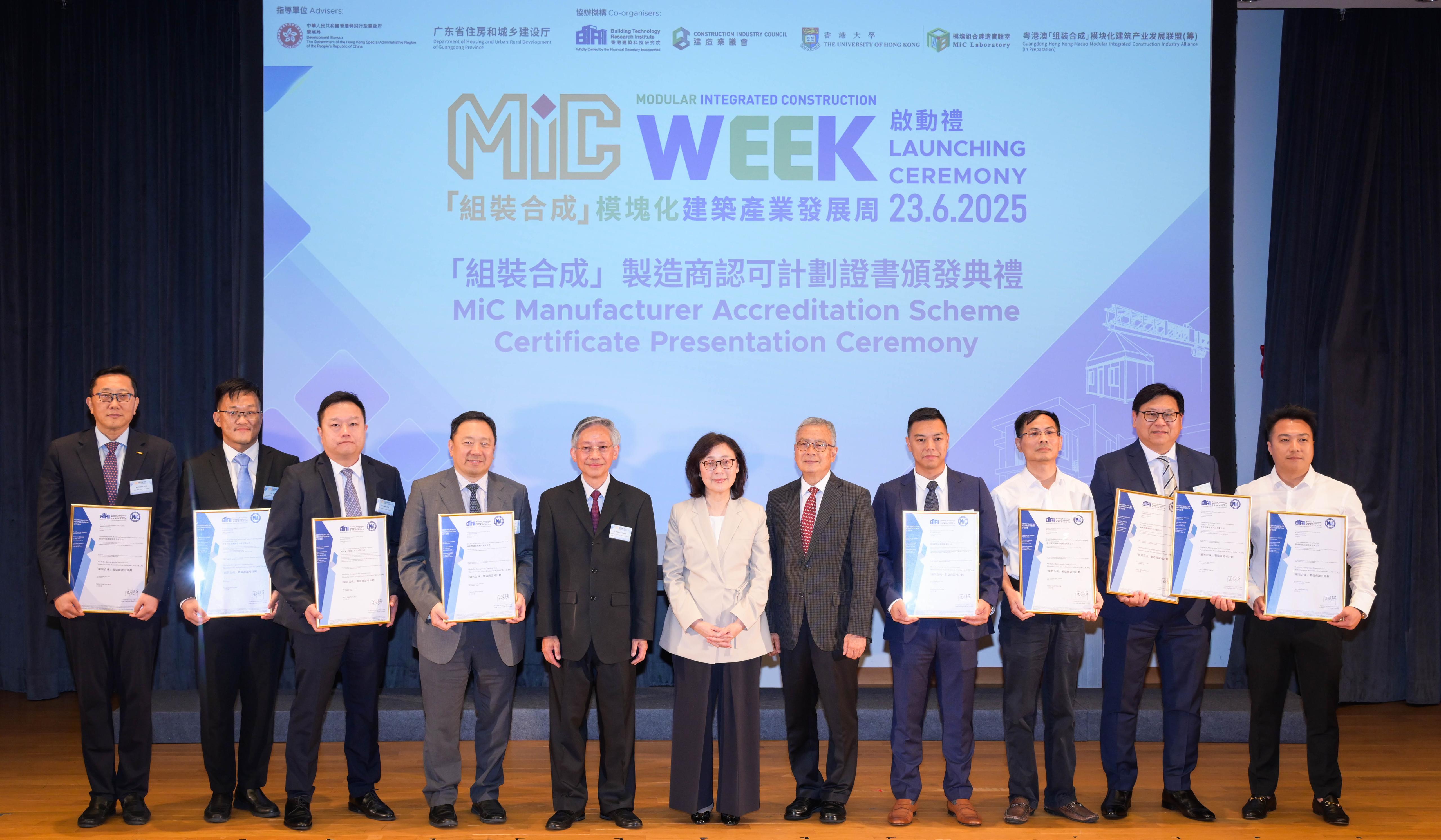 發展局局長甯漢豪在啓動禮致辭時表示,特區政府積極推動業界採用「組裝合成」建築法,以提升建造業的生產力和成本效益,至今已有超過一百個政府及私人項目採用這種先進建築方法。她指出,特區政府正落實一系列強化「組裝合成」組件供應鏈的措施,包括發布《粵港「組裝合成」模塊化建築跨境貿易指南》;推出「組裝合成」製造商認證服務;發布「組裝合成」年度需求預測及加強「組裝合成」相關培訓;研發更多創新技術等。其中,發展局計劃在今年稍後公布為工務工程引入新要求,「組裝合成」製造商必須取得相關認證才可承投有關工程,希望藉此既簡化審批,同時確保質素。