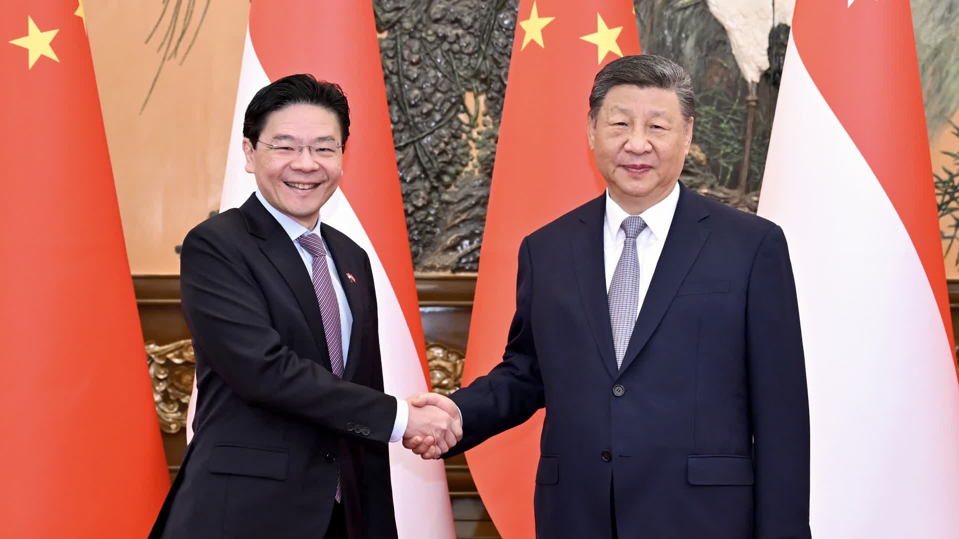 習近平強調,中新要牢牢把握兩國友好大方向,始終從戰略高度和長遠角度看待和發展中新關係,確保航向不偏、動力不減。要築牢中新友好政治基礎,支持彼此核心利益和重大關切,以更高水平政治互信服務兩國關係發展。中方歡迎新方繼續深度融入中國發展,雙方要深入推進共建「一帶一路」合作,打造數字經濟、綠色發展、人工智能等領域標誌性成果,推動重大項目提質升級,續寫高質量合作新篇章。要鼓勵兩國人民常來常往,深化人文交流合作,讓中新友好更加深入人心。中方始終認為,和平、發展、合作、共贏的時代潮流不可阻擋,世界不能重拾霸權主義,不能被拖回叢林法則。中方願同新方一道,站在歷史正確一邊、站在公平正義一邊,共同倡導平等有序的世界多極化、普惠包容的經濟全球化,推動世界走向和平、安全、繁榮、進步的光明前景。