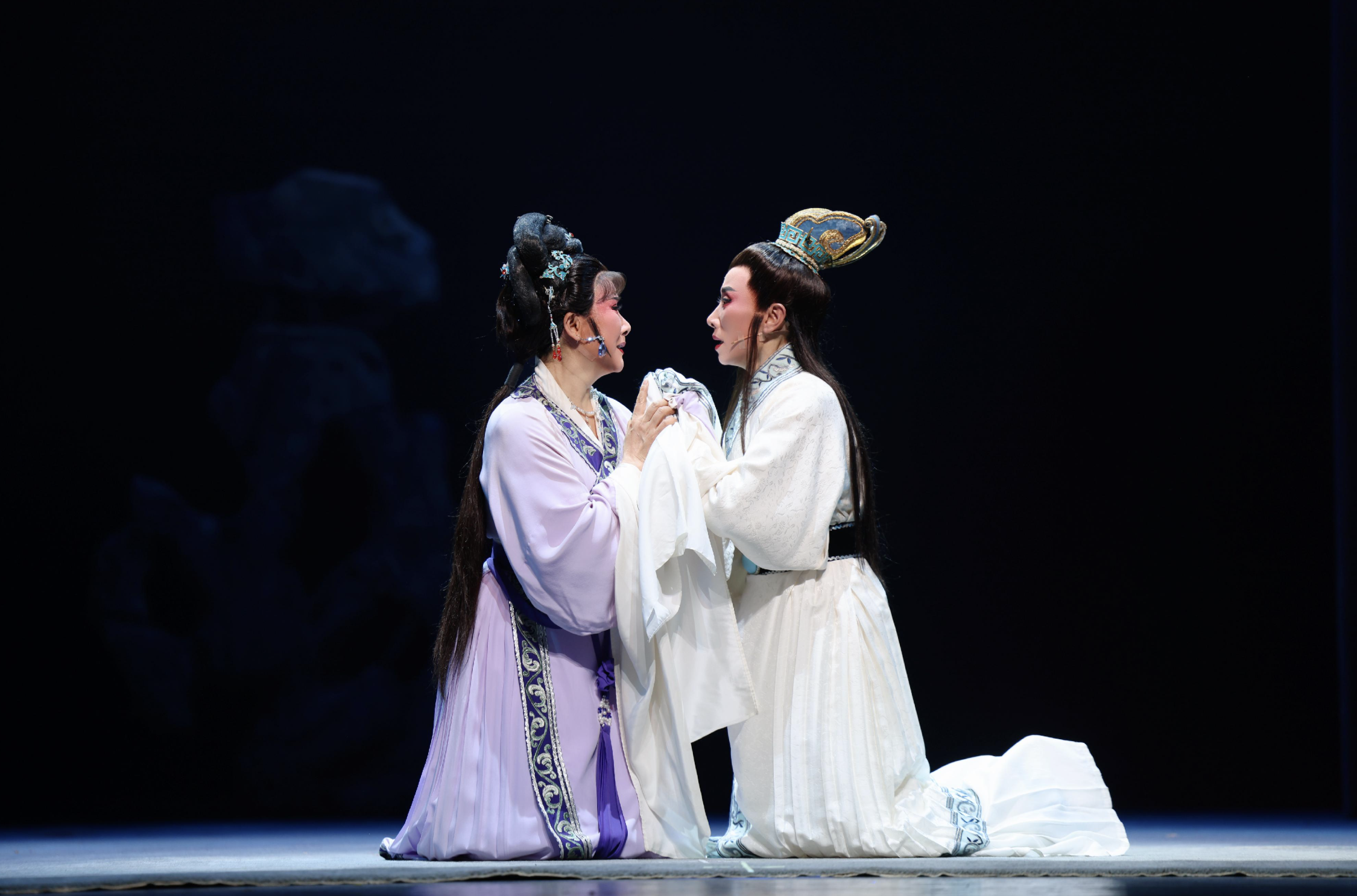 《孔雀東南飛》被喻為「中國版羅密歐與茱麗葉」,講述焦仲卿和劉蘭芝二人被迫分離而雙雙殉情的淒美故事,乃范瑞娟和傅全香的代表作之一。今次演出由范派傳人吳鳳花與傅派傳人陳飛聯袂擔演,充分展現范派藝術的醇厚與質朴和傅派特有的婉轉俏麗。其中〈人去樓空空寂寂〉的經典唱段將古詩融合戲曲詞句,配上鑼鼓絲竹譜出二人之間的相思與無奈。