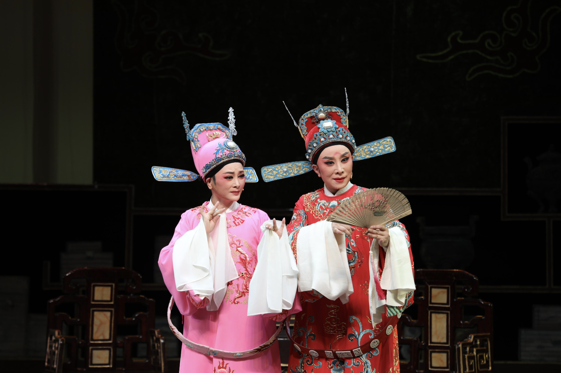 《沉香扇》是一部浪漫且詼諧的作品,由吳鳳花和呂派傳人吳素英擔演,劇情描述布衣才子徐文秀和尚書府千金蔡蘭英之間的跨門第愛情故事。在〈書房會〉一折,機敏聰慧的蔡蘭英與憨厚淳樸的徐文秀之間的對手戲喜感十足,為戲迷津津樂道的橋段。