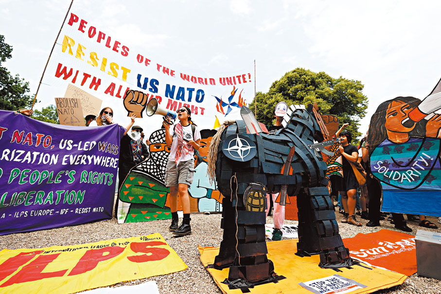 數千名抗議者周日在海牙舉行反北約集會,多人受訪時表達對北約軍事擴張和煽動戰爭的強烈不滿,認為北約「正成為美國帝國主義的工具,在全球範圍內製造戰爭與衝突」。一名來自美國的抗議者說,「北約應在海牙接受審判,而非舉行峰會。」