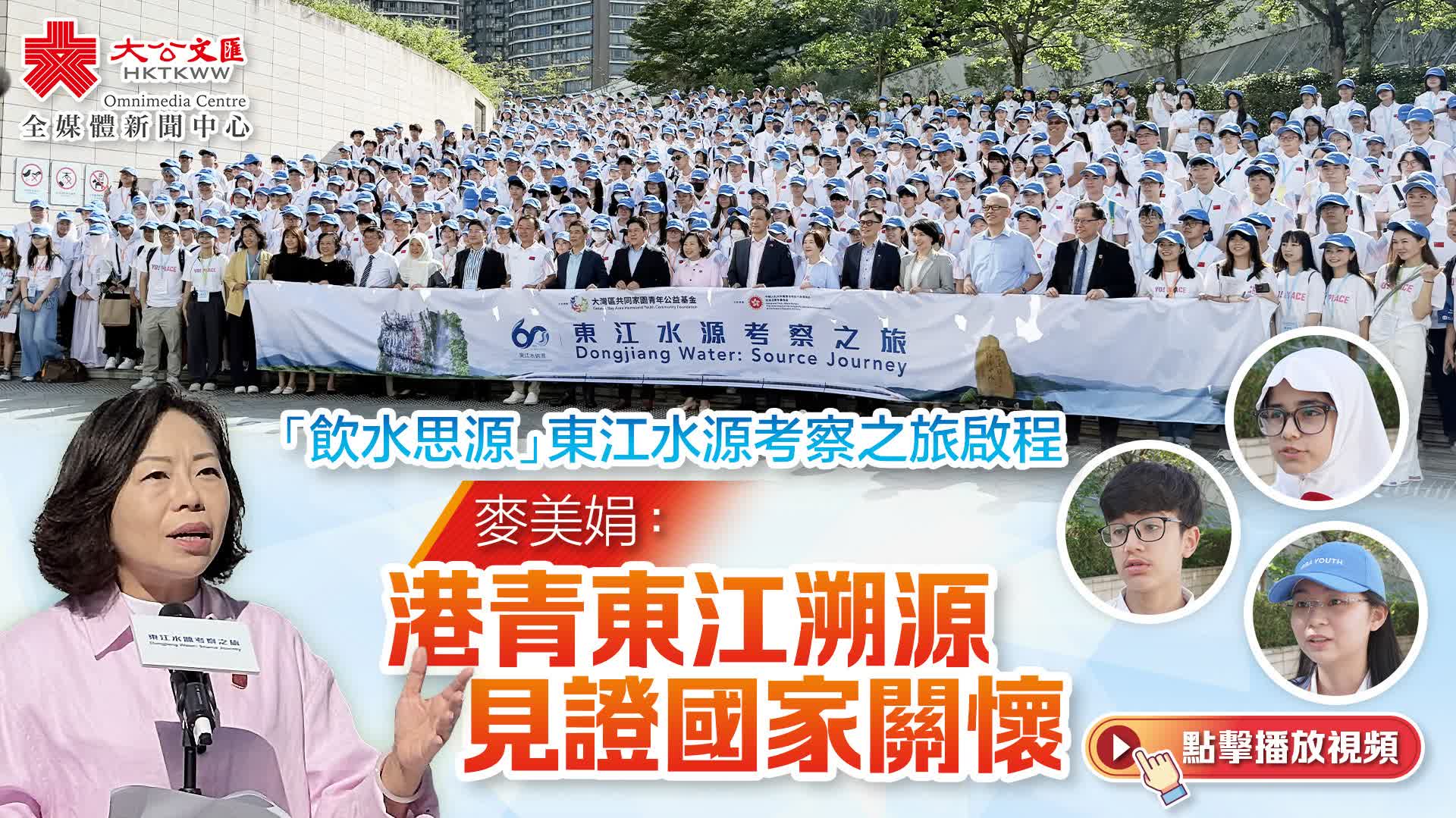 (大公文匯全媒體 記者 周禹含)為紀念東江水供港60周年,由大灣區共同家園青年公益基金(大灣區青年公益基金)主辦、民政及青年事務局(民青局)協辦的「東江水源考察之旅」於6月25日至27日舉行,旨在讓香港青年深入了解東深供水工程的歷史及國家水資源保護成就,親身體驗「飲水思源」的精神。由本地基層中學生、教師及青年義工組成的近600人考察團今日(25日)上午啟程,並於行前舉行出發儀式。