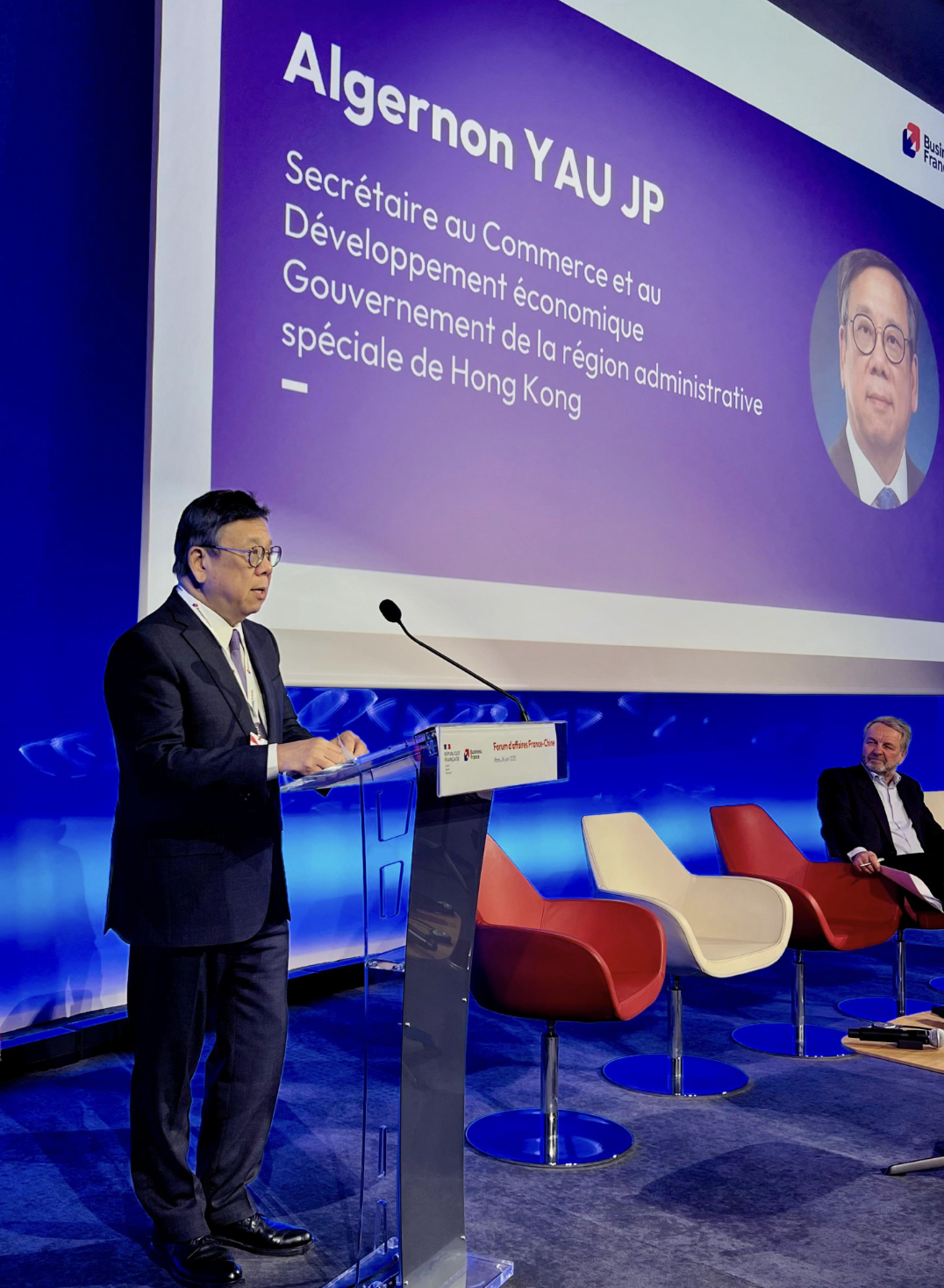 大公文匯全媒體報道,商務及經濟發展局局長丘應樺於當地時間6月24日在法國進行最後一日訪問。他在巴黎出席由法國商務投資署舉辦的中國論壇,向當地商界推廣香港作為進入亞洲和內地市場門戶的優勢和獨特角色。