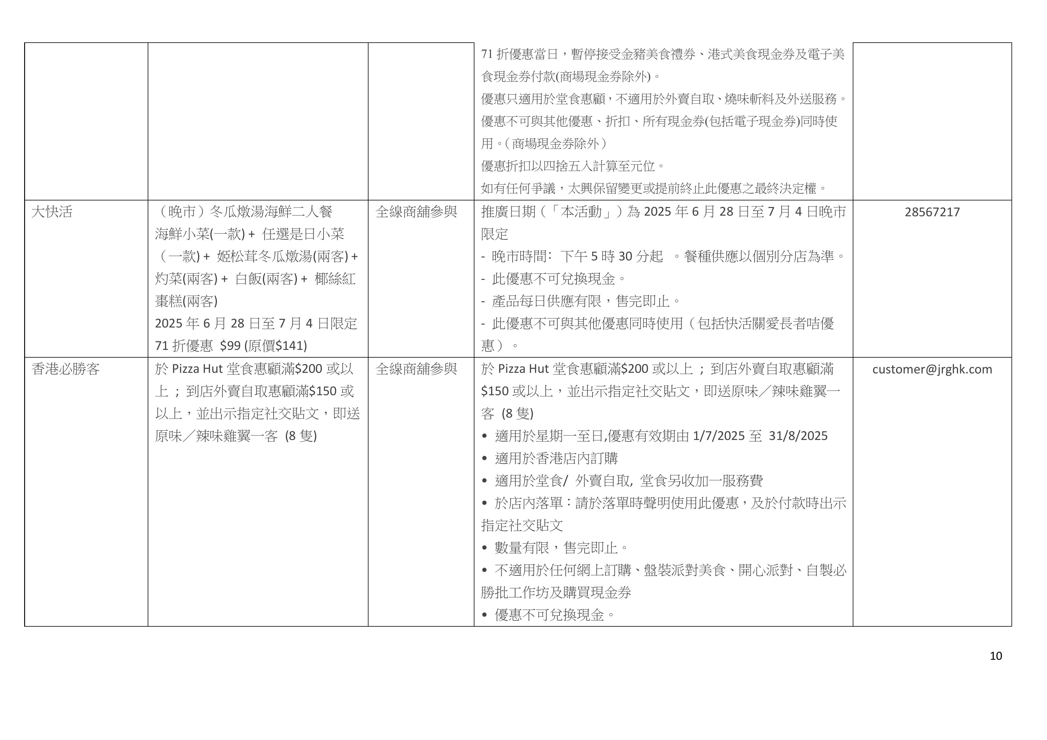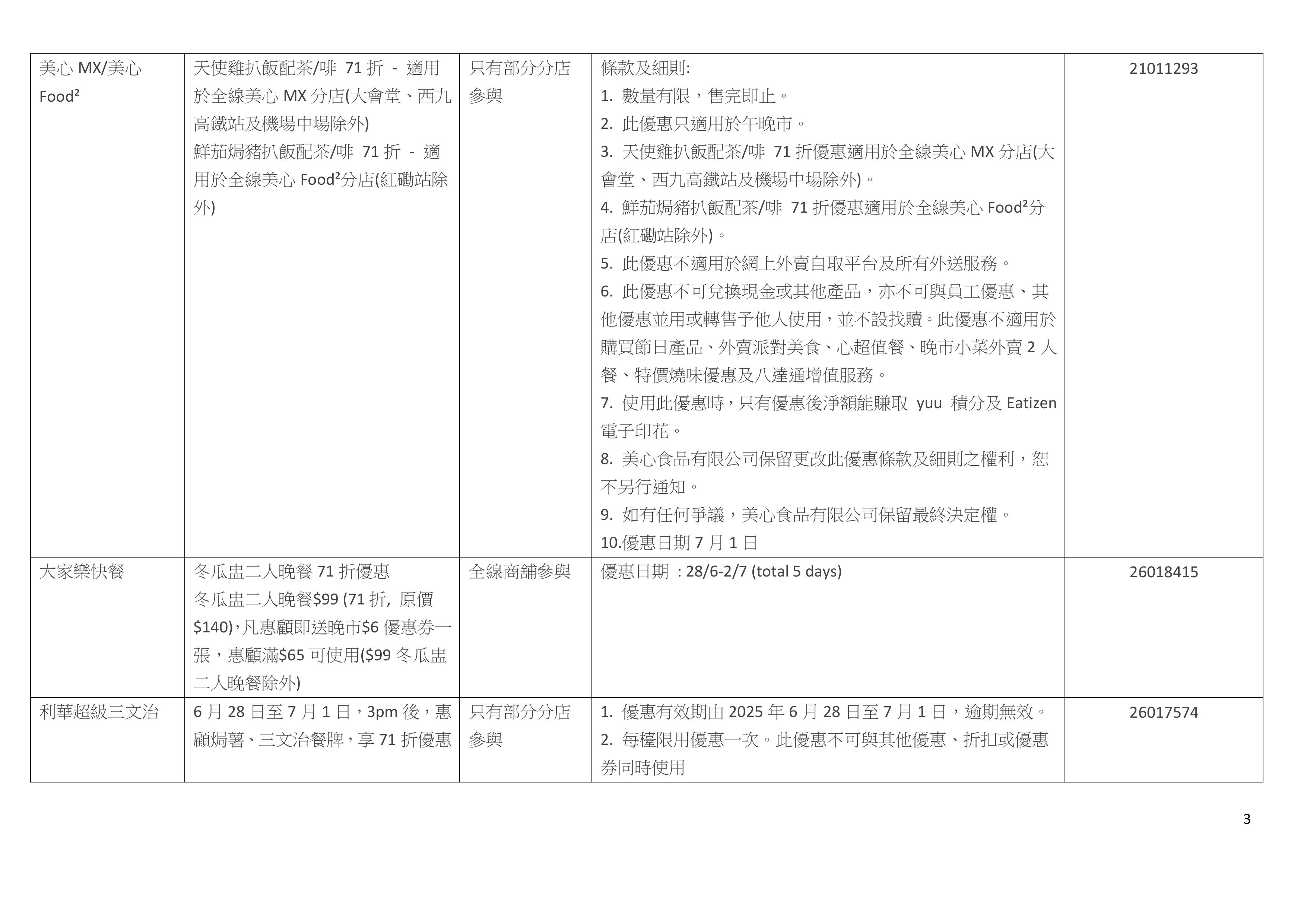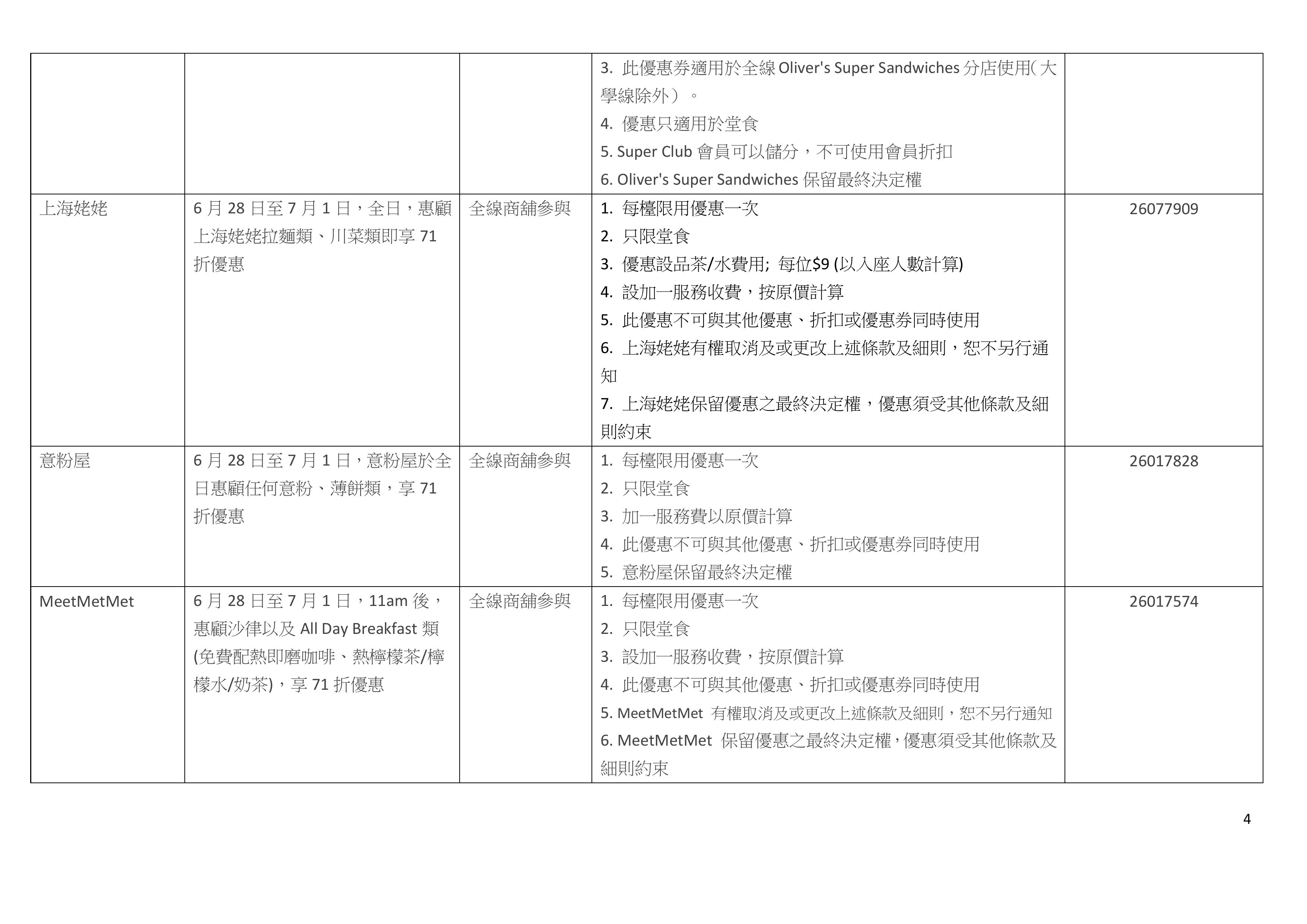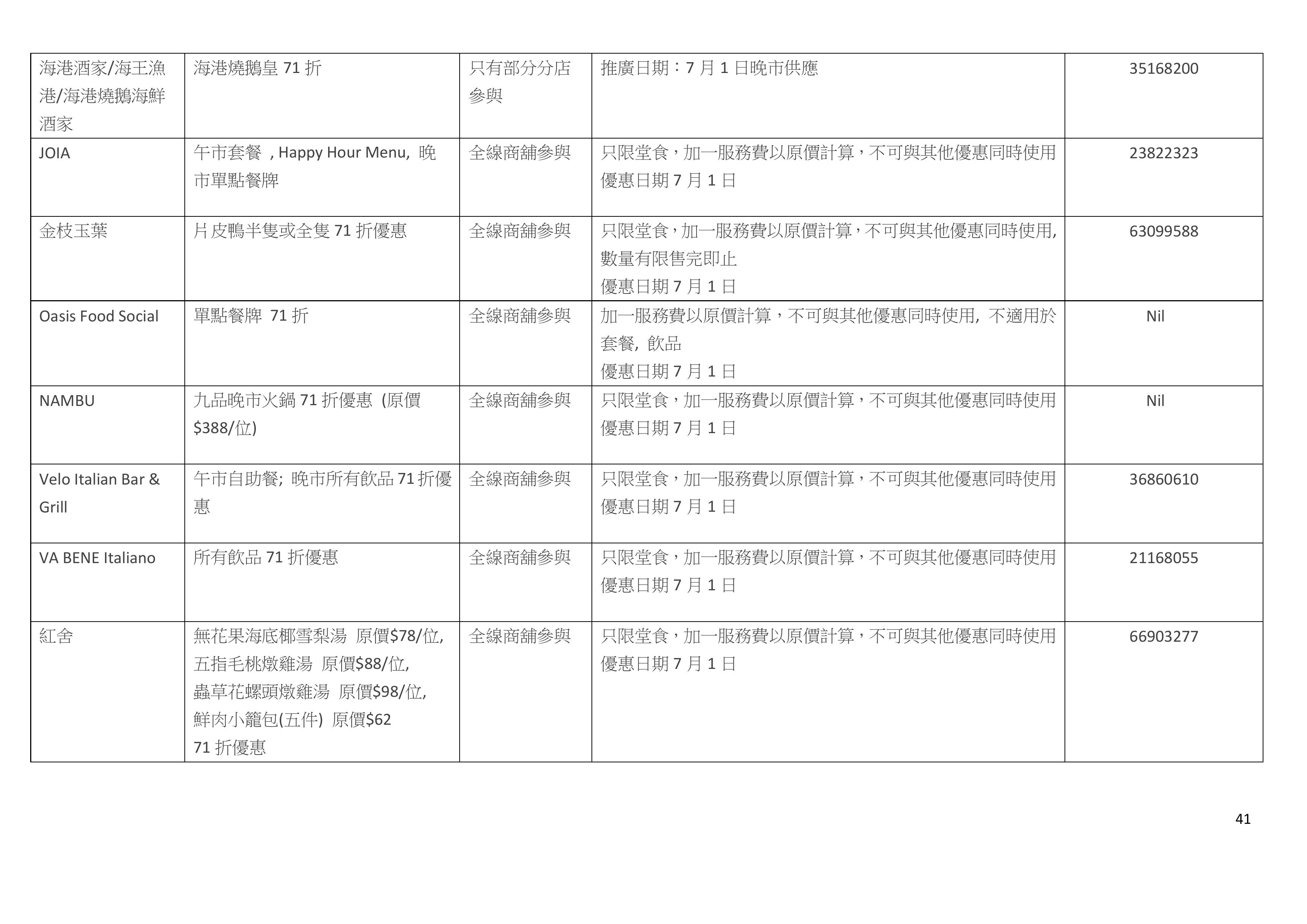 另外,太興集團旗下16個品牌將推出全日堂食全單71折;全線大快活將於本月28日至7月4日推出指定晚市2人餐71折優惠。