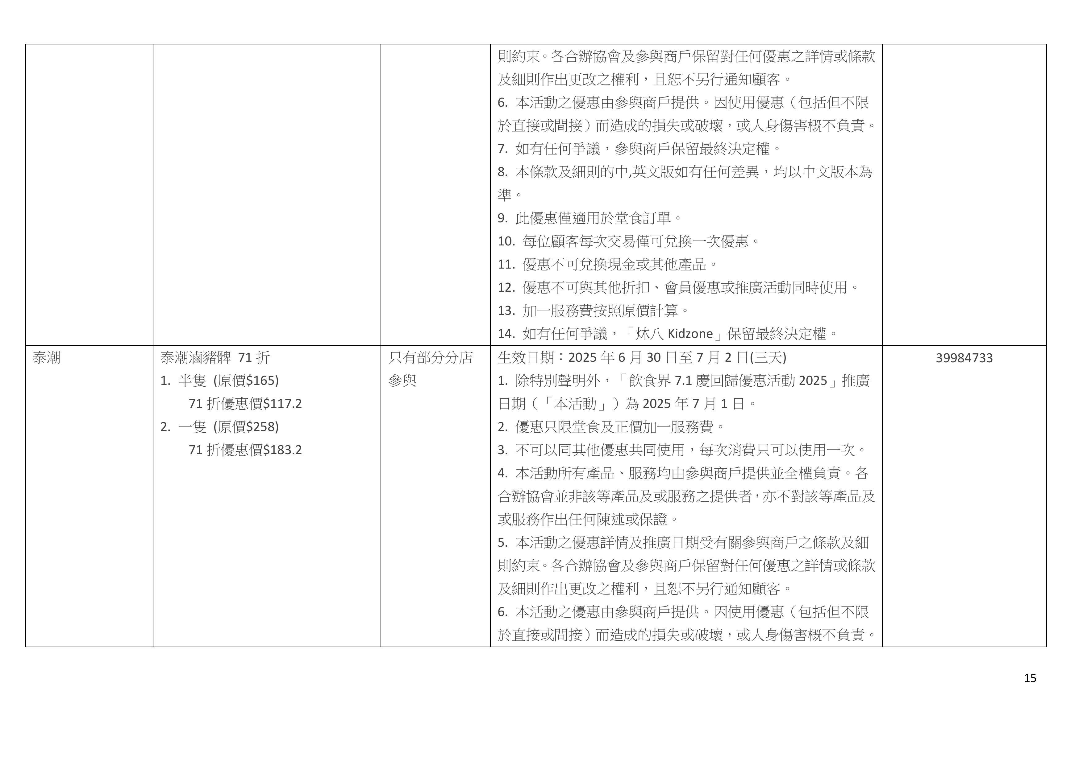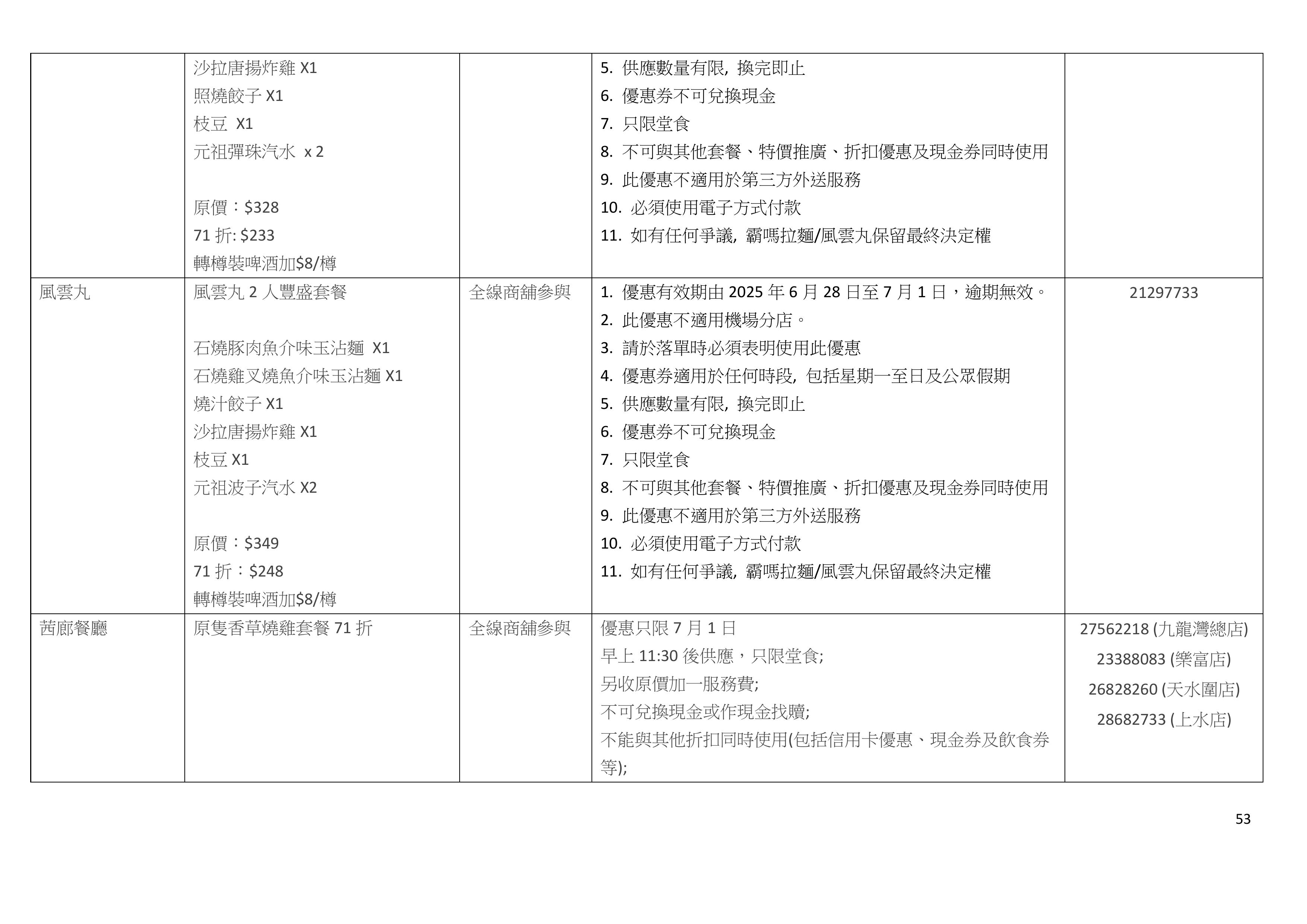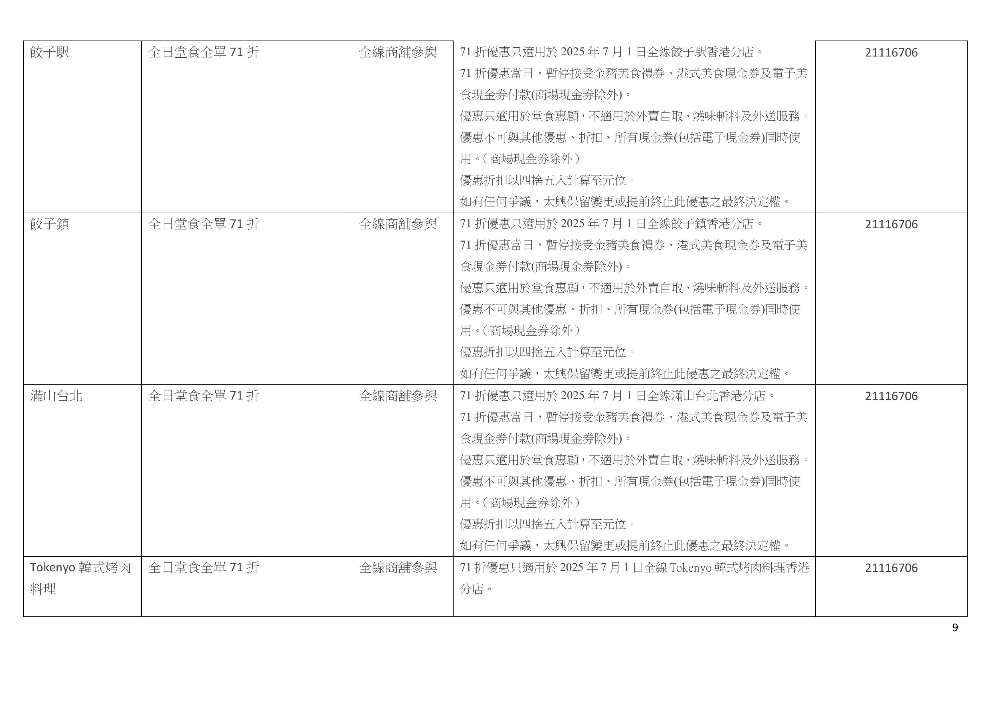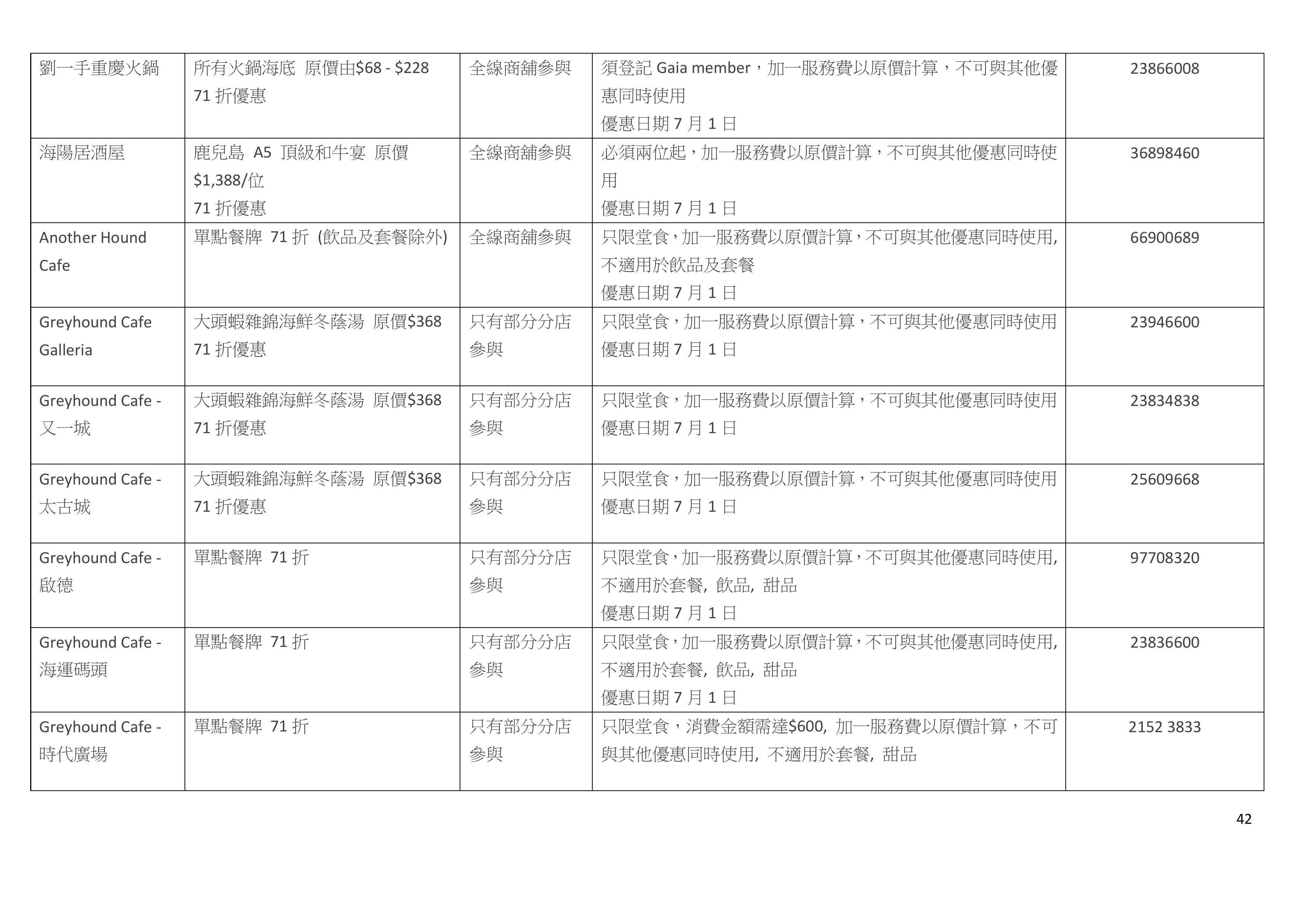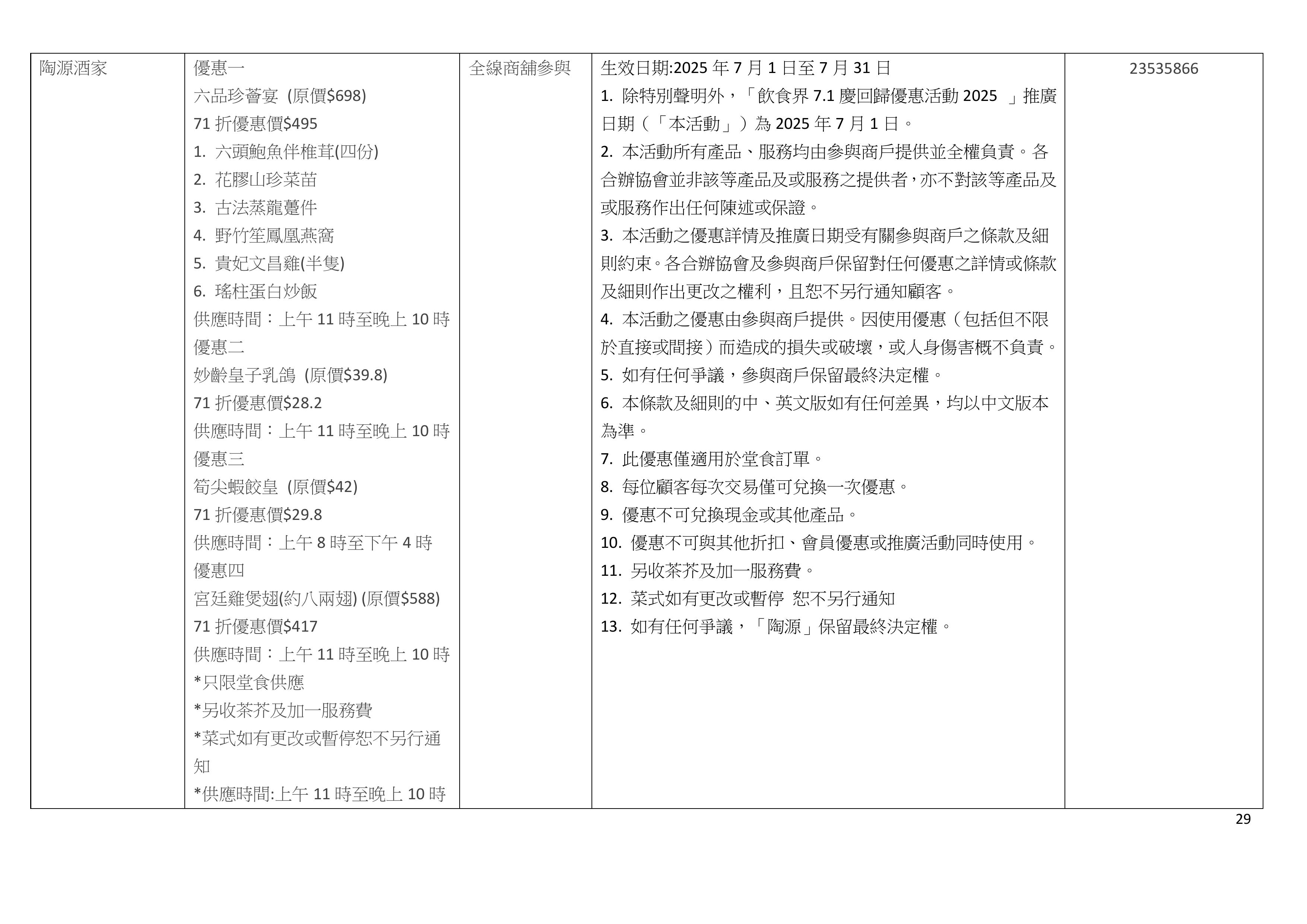 另外,太興集團旗下16個品牌將推出全日堂食全單71折;全線大快活將於本月28日至7月4日推出指定晚市2人餐71折優惠。