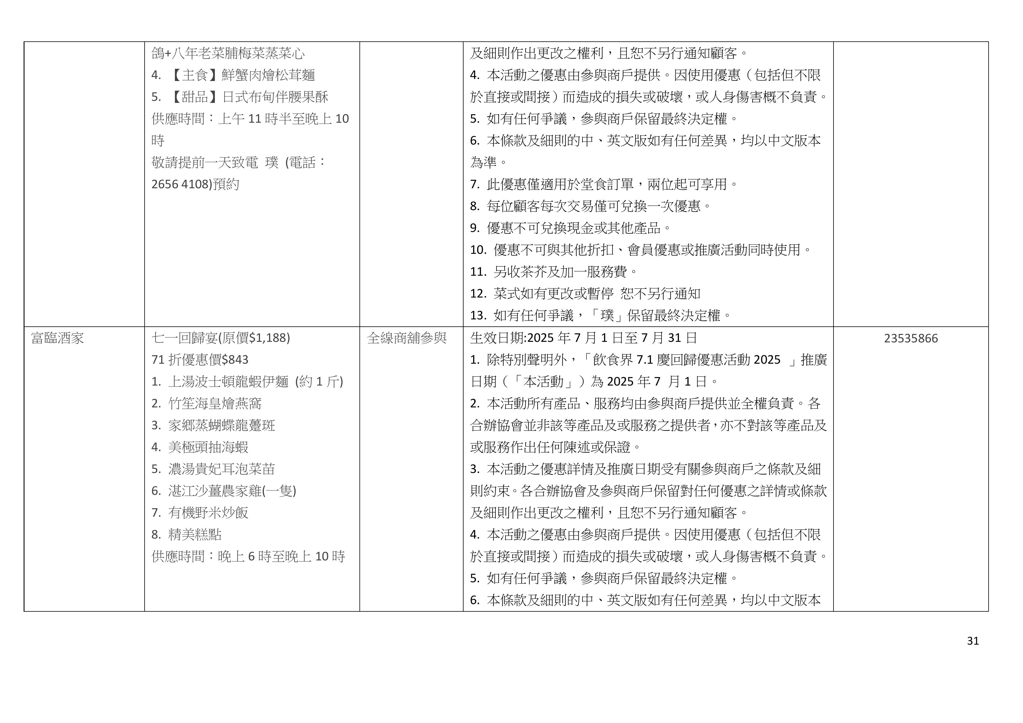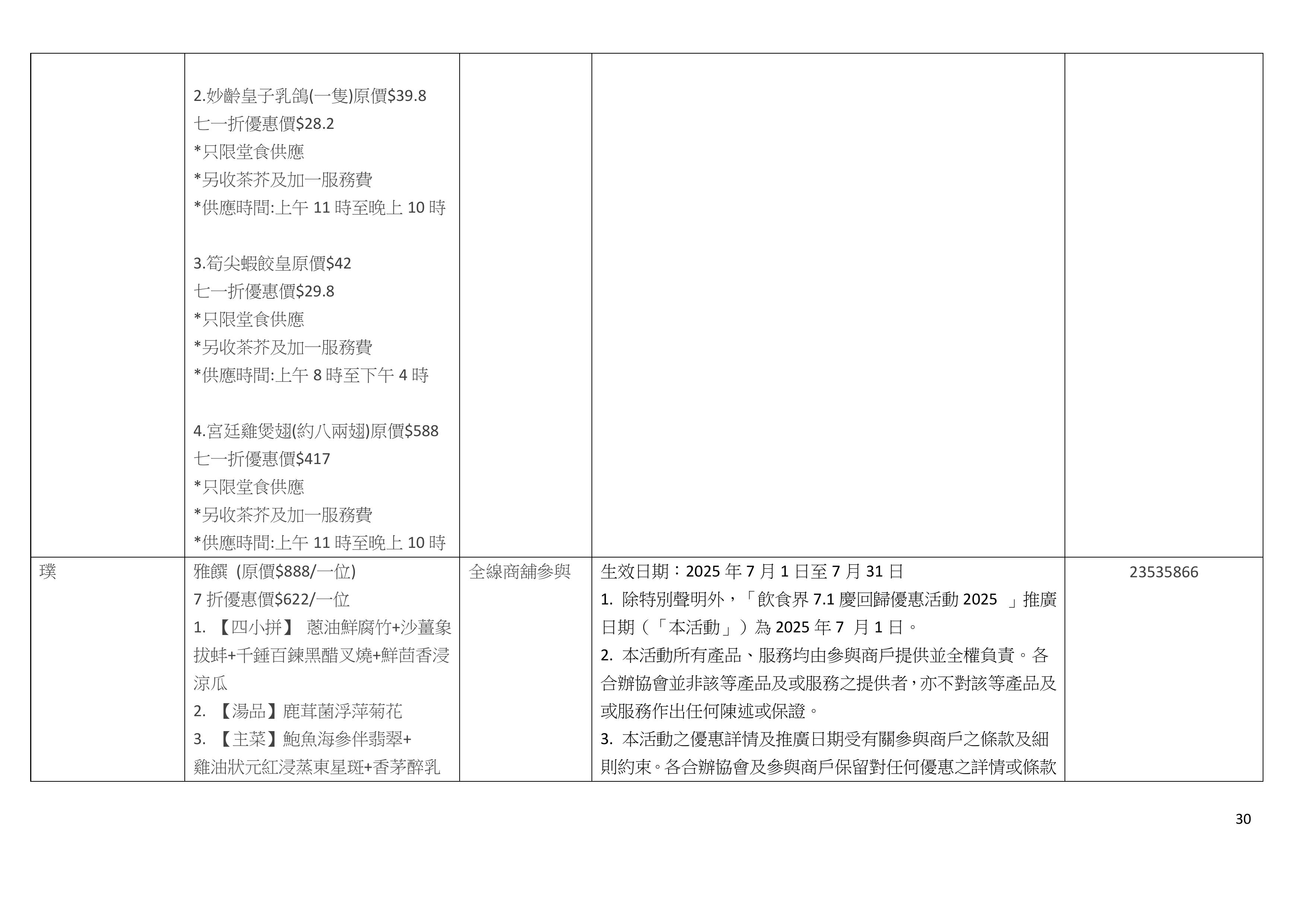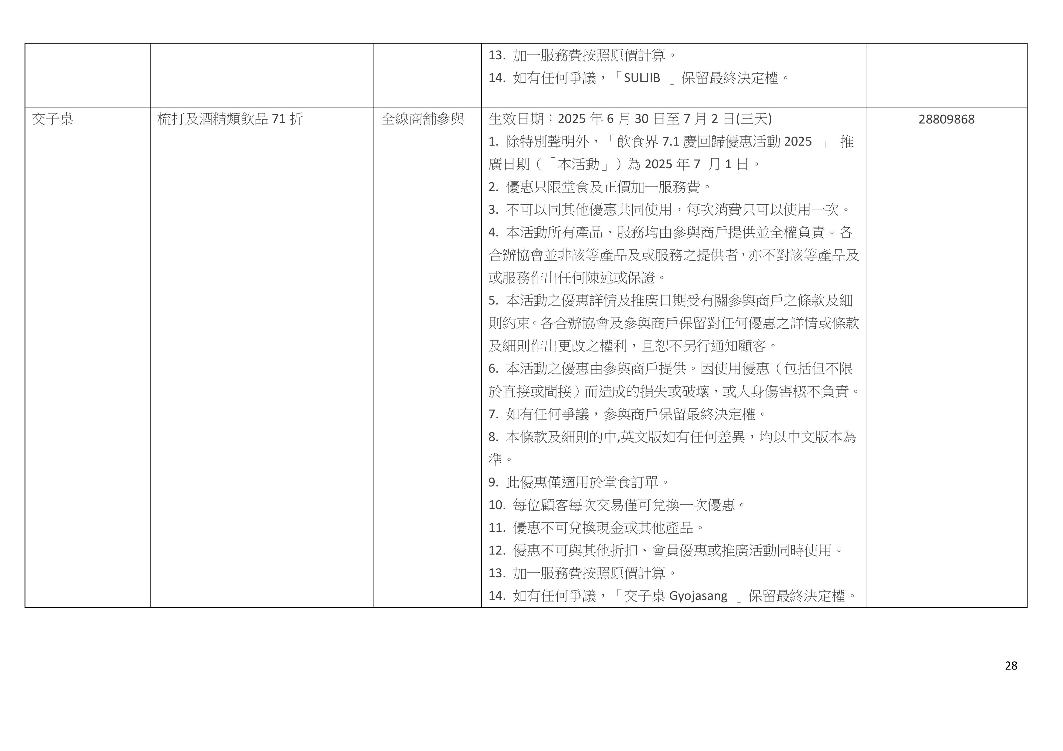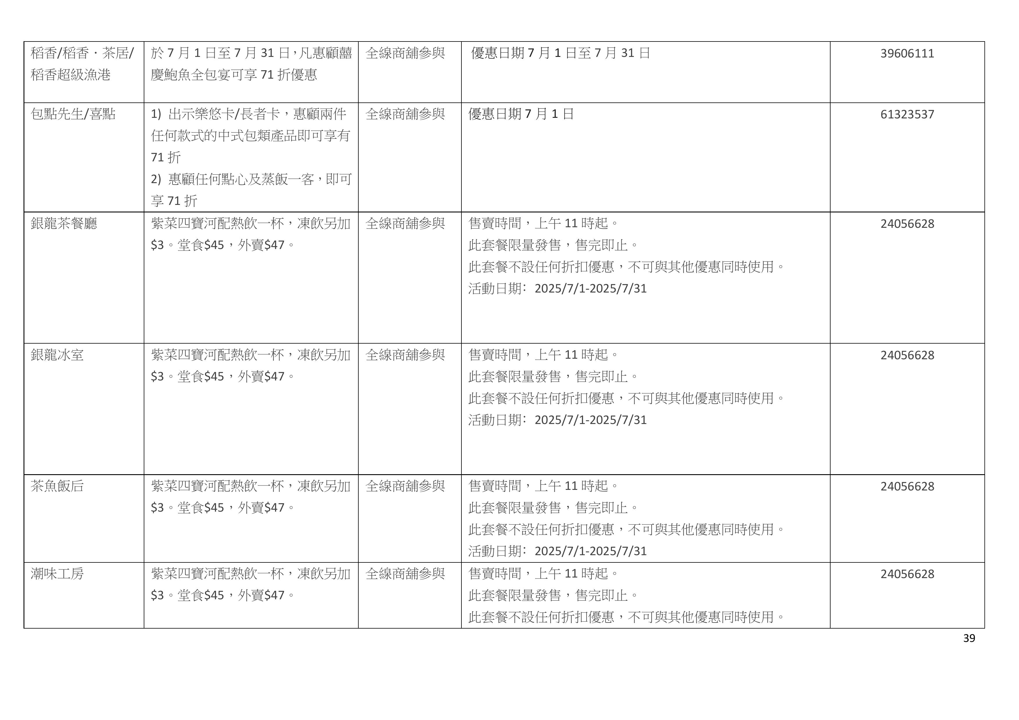 另外,太興集團旗下16個品牌將推出全日堂食全單71折;全線大快活將於本月28日至7月4日推出指定晚市2人餐71折優惠。