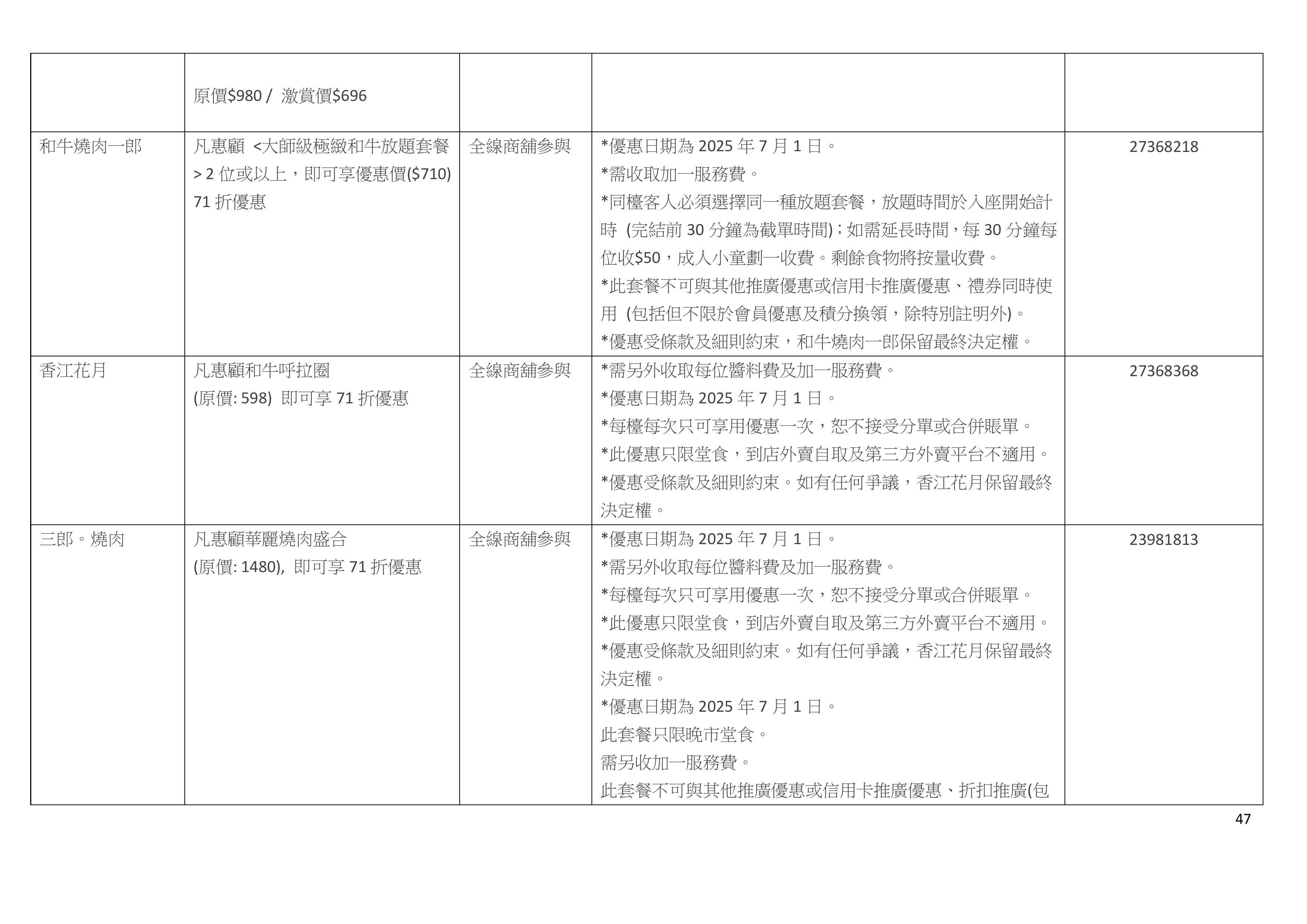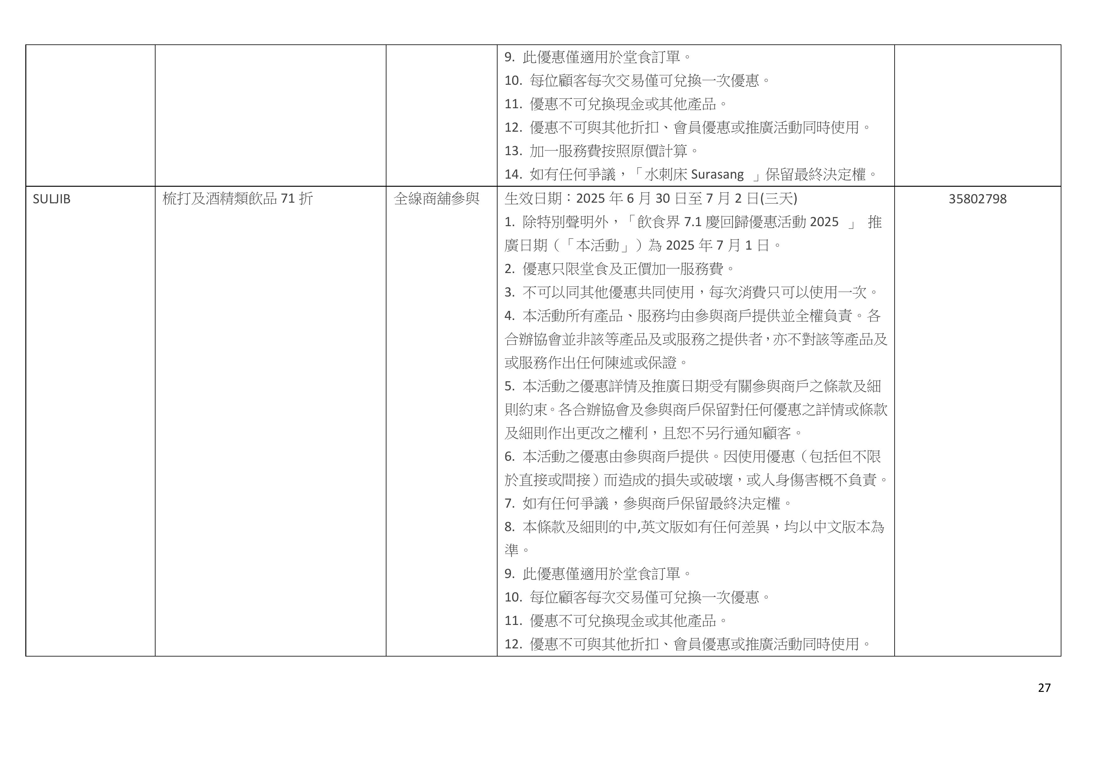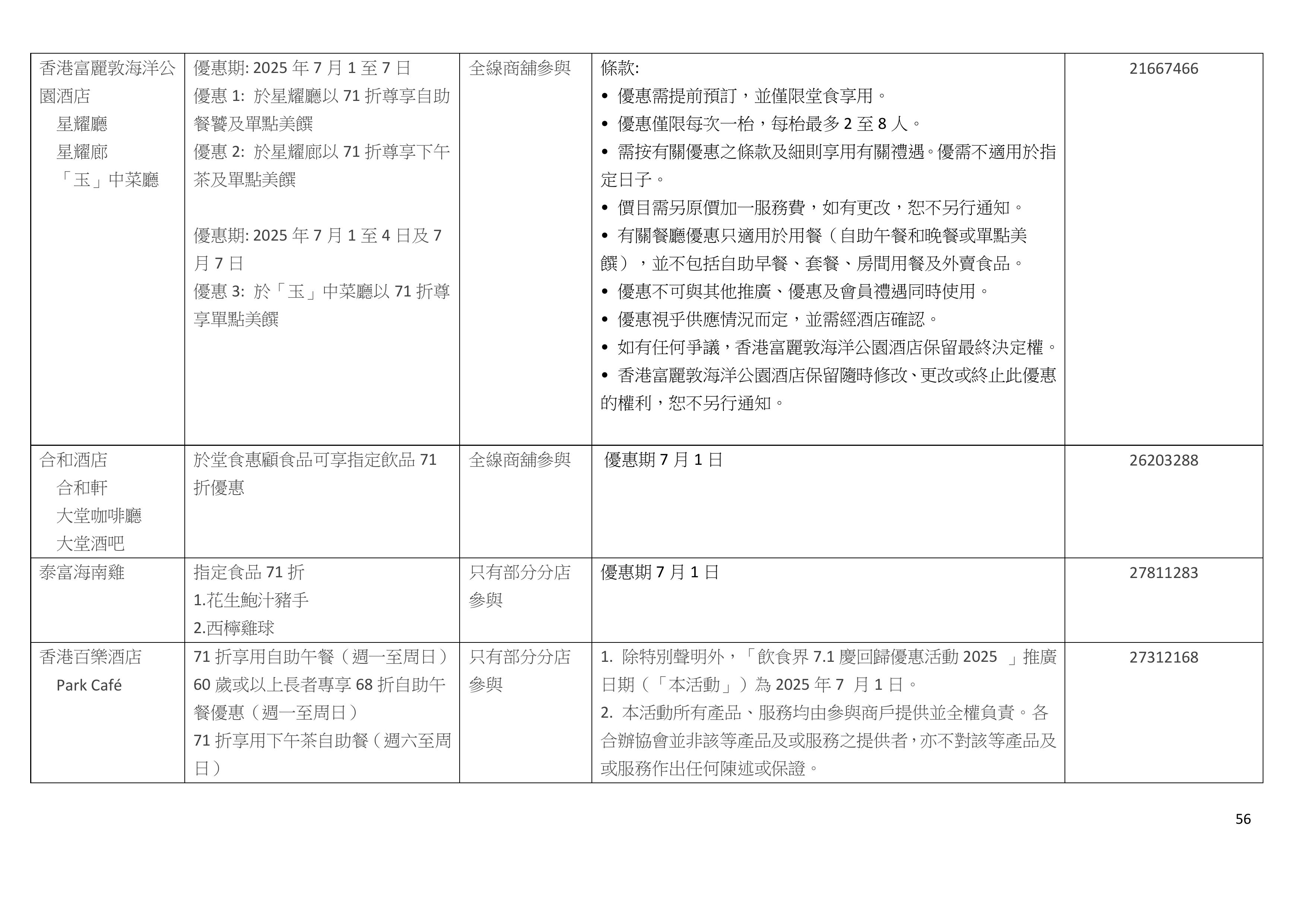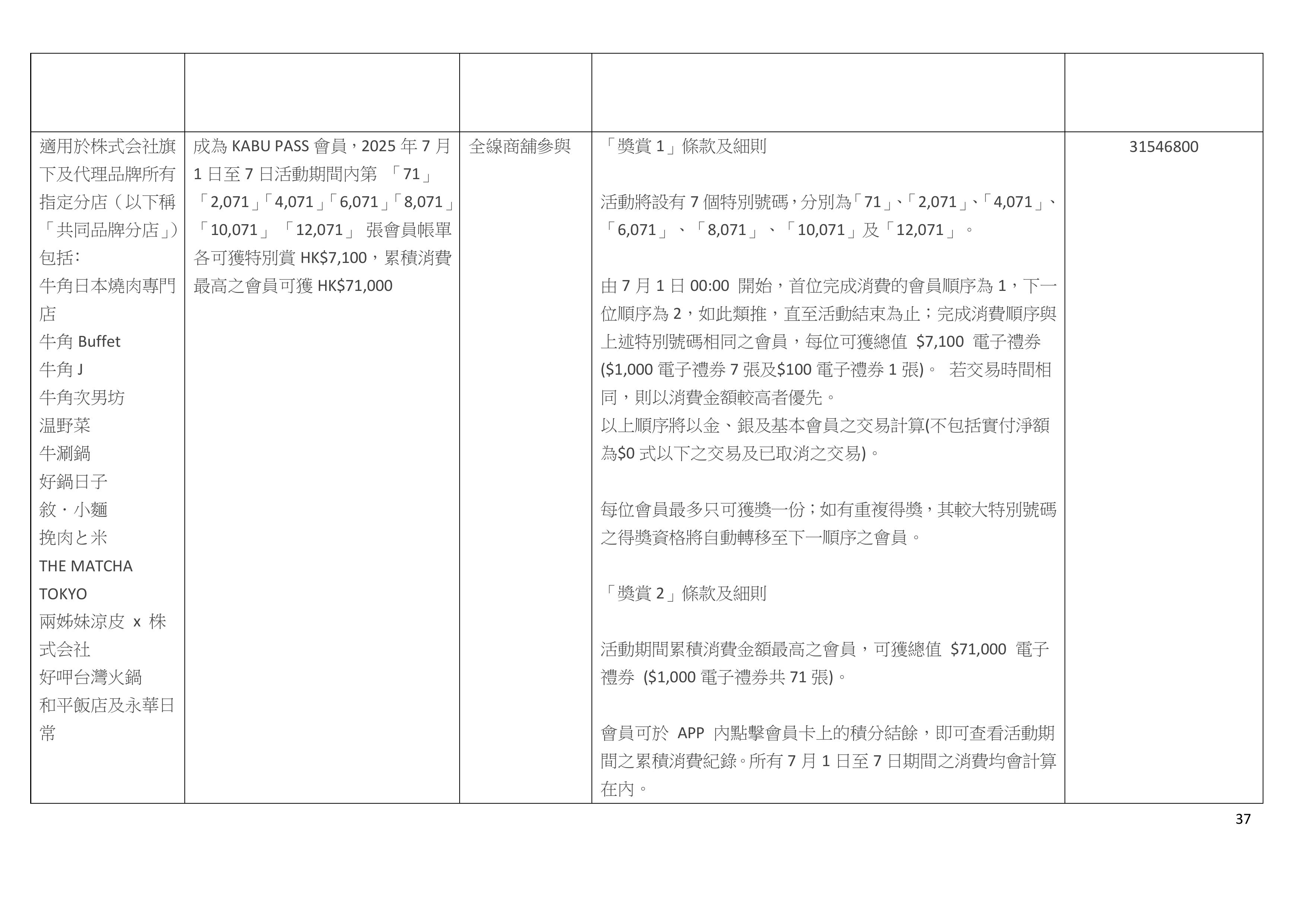 旗下有牛角、溫野菜、牛涮鍋等多間日式食肆的敘福樓集團推出會員活動,當日起一星期內,按完成消費順序計,第71、2,071、4,071、6,071、8,071、10,071、12,071張會員賬單,可獲總值7,100元的電子禮券。活動期間累積消費金額最高之會員,更可獲總值71,000元的電子禮券。