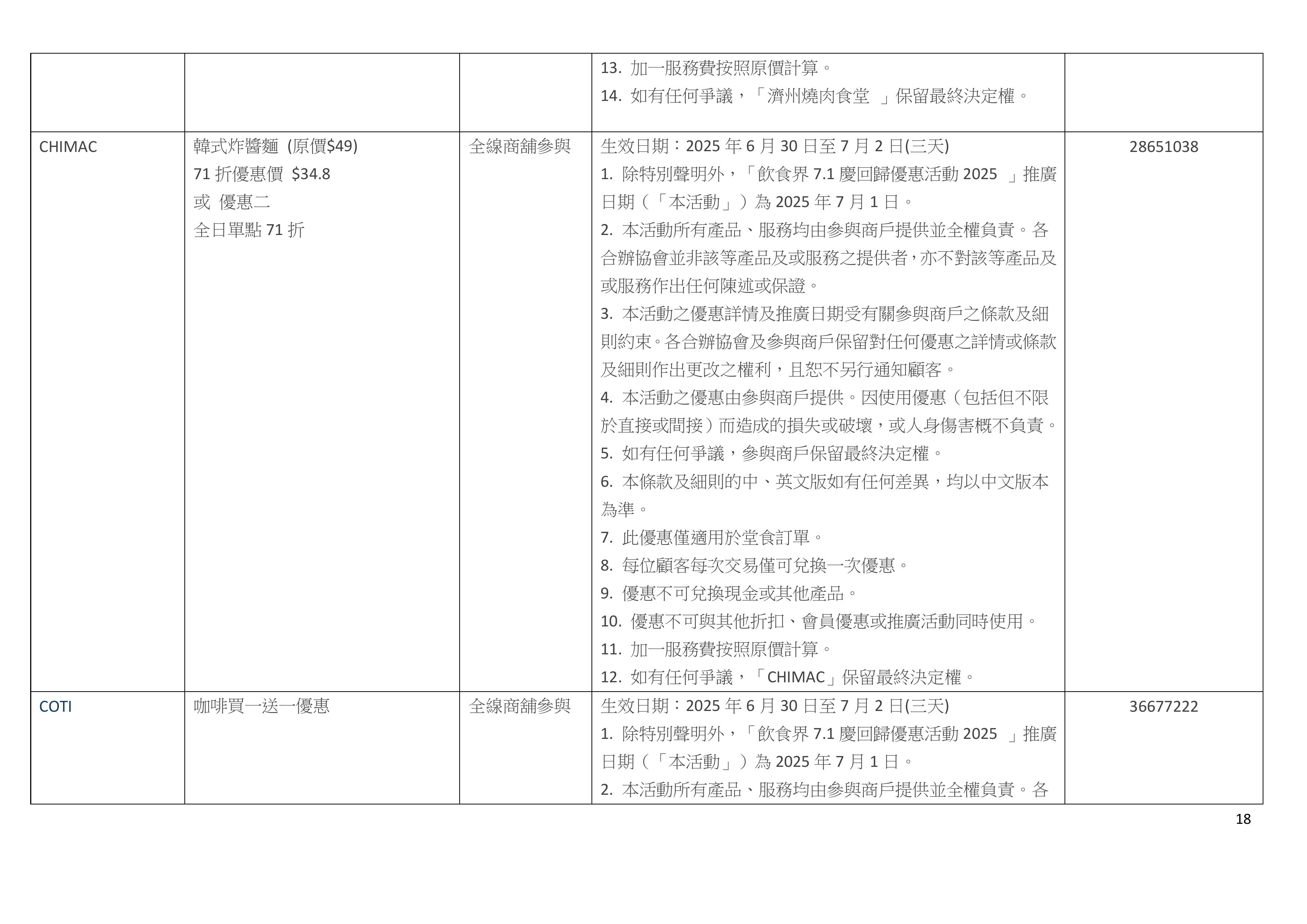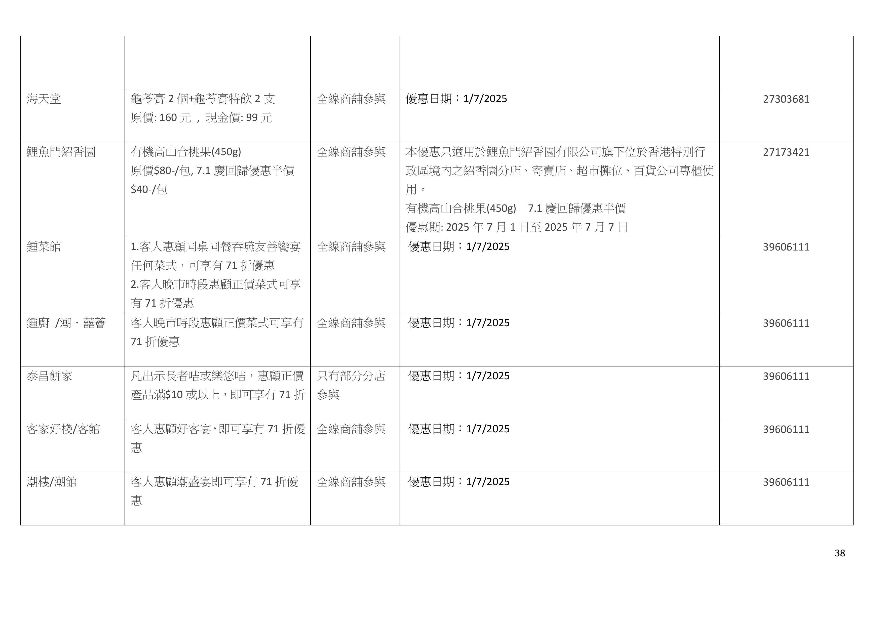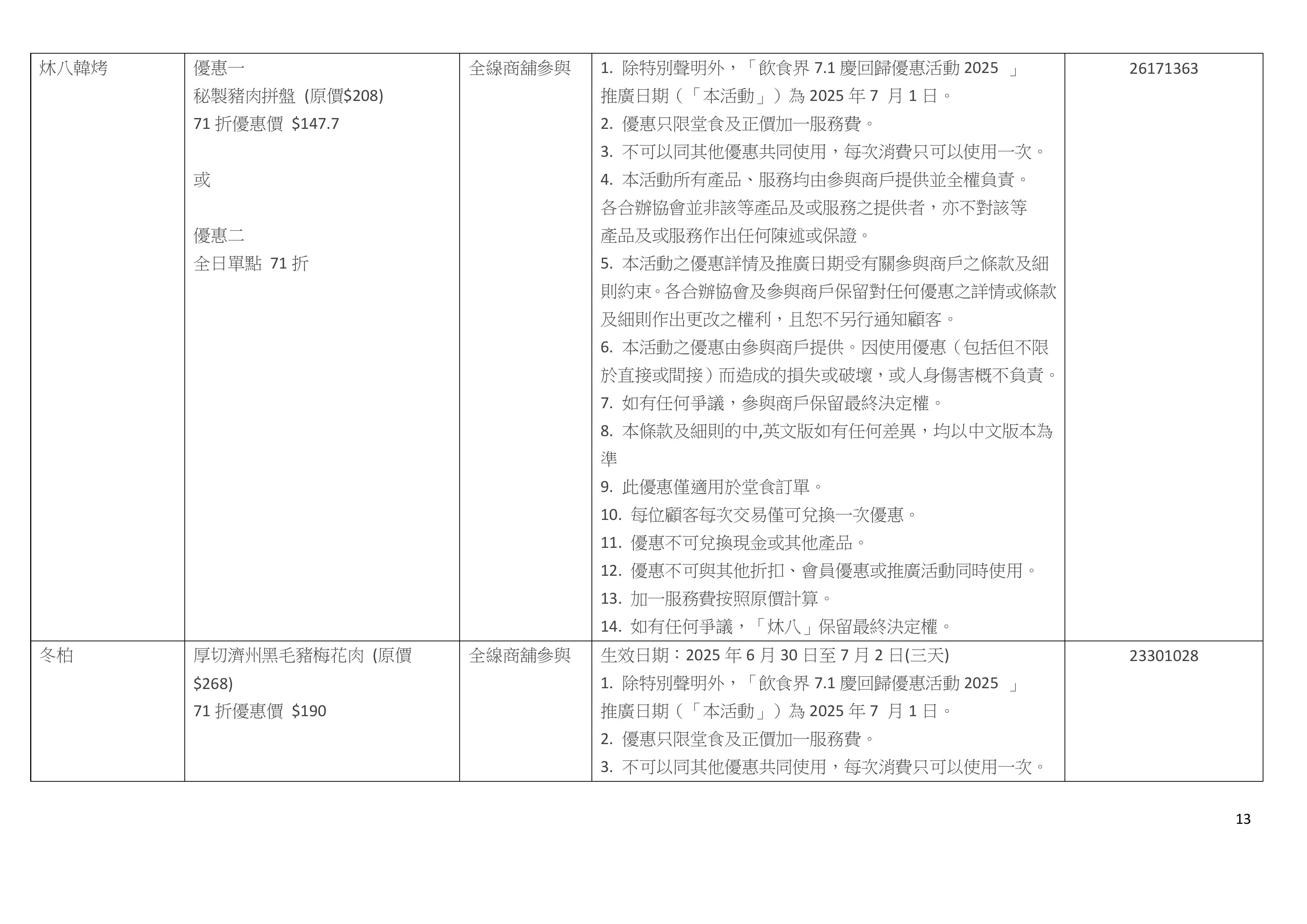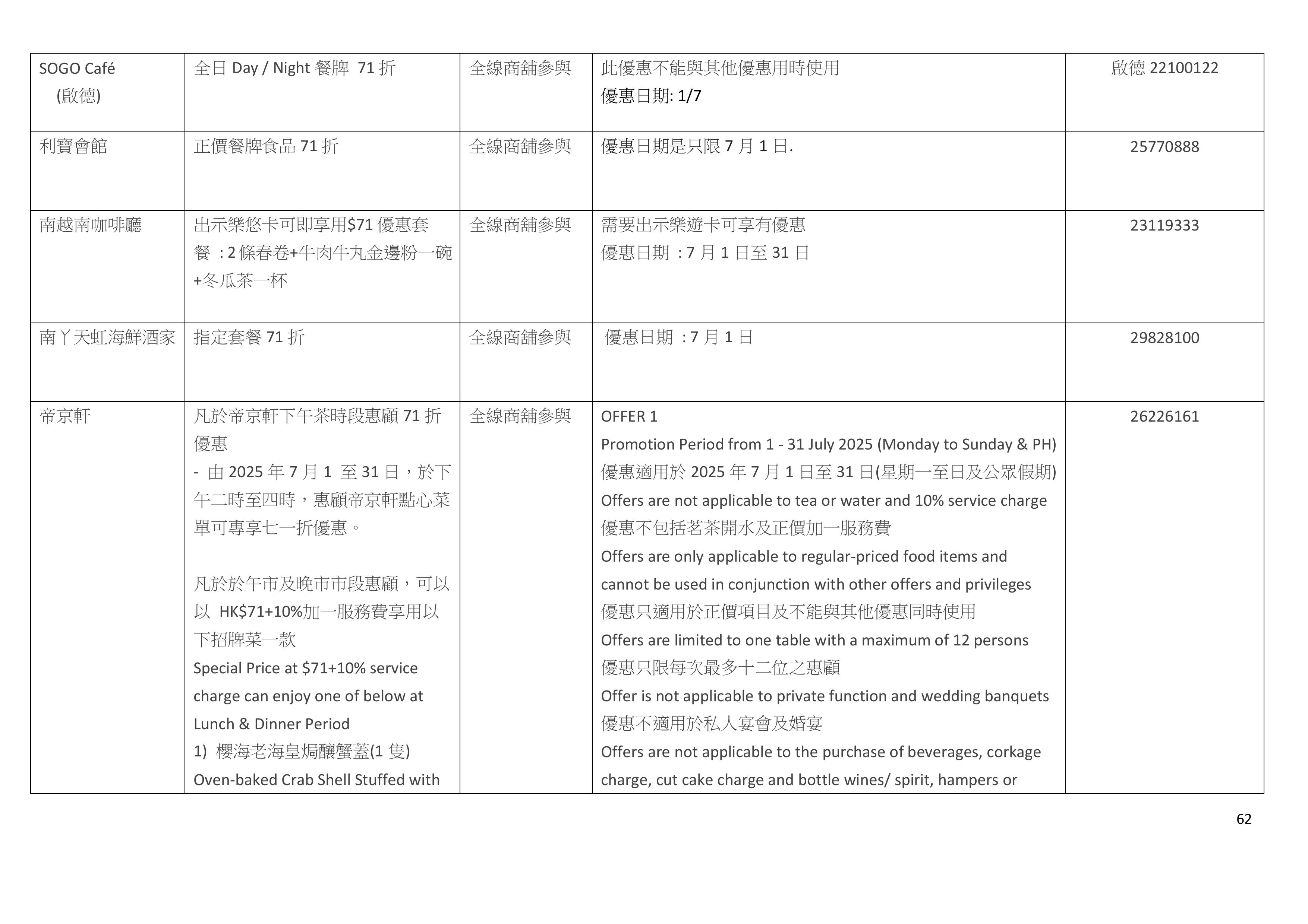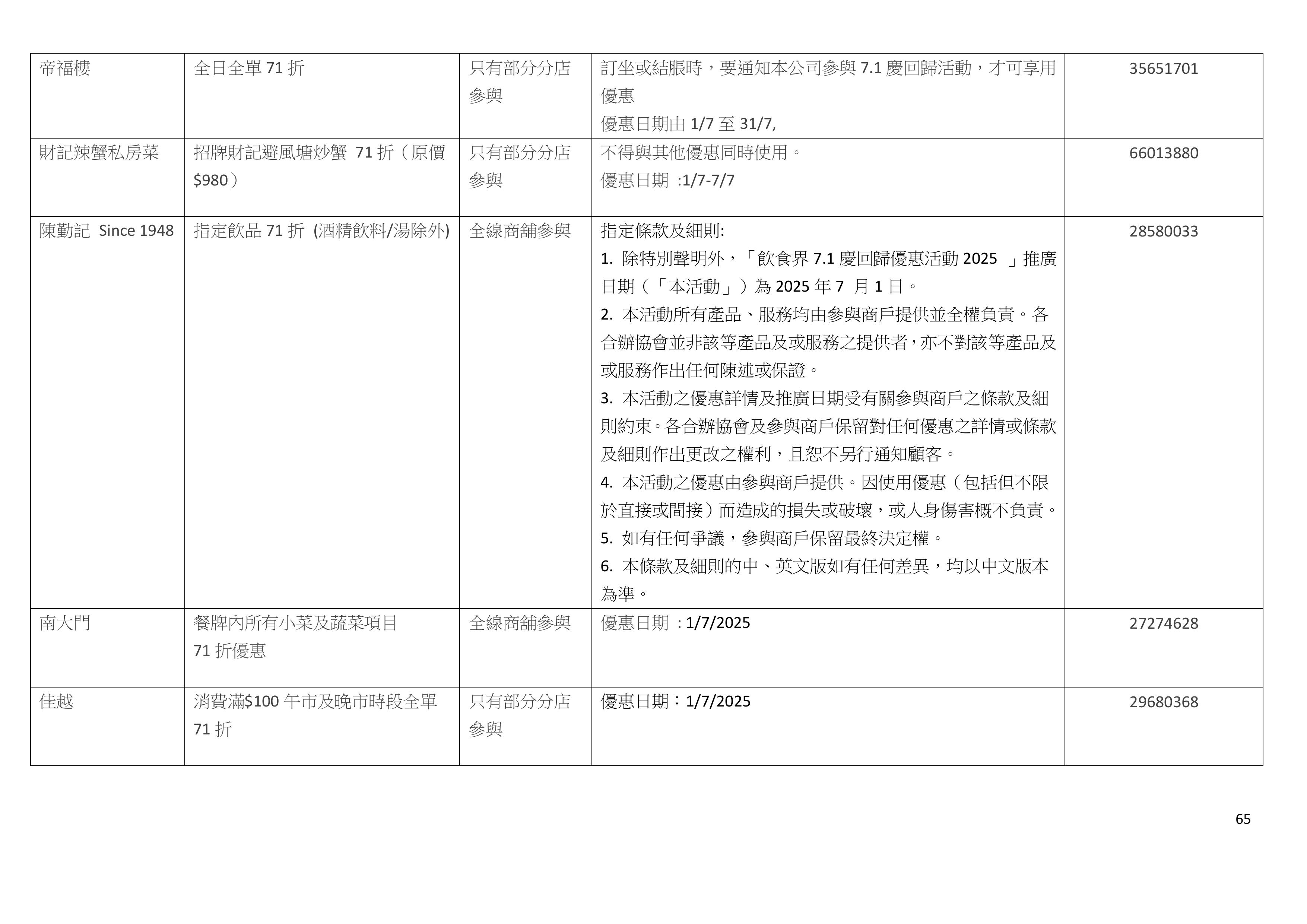 旗下有牛角、溫野菜、牛涮鍋等多間日式食肆的敘福樓集團推出會員活動,當日起一星期內,按完成消費順序計,第71、2,071、4,071、6,071、8,071、10,071、12,071張會員賬單,可獲總值7,100元的電子禮券。活動期間累積消費金額最高之會員,更可獲總值71,000元的電子禮券。