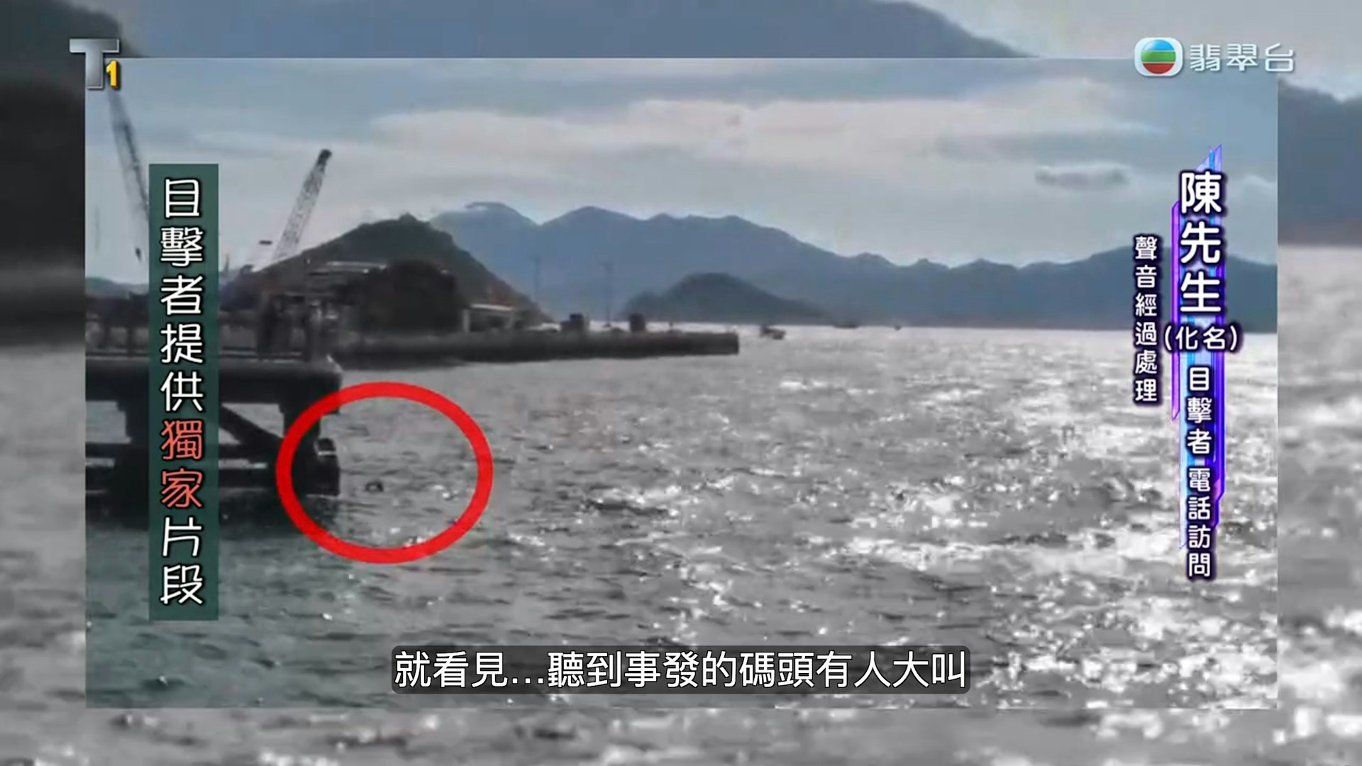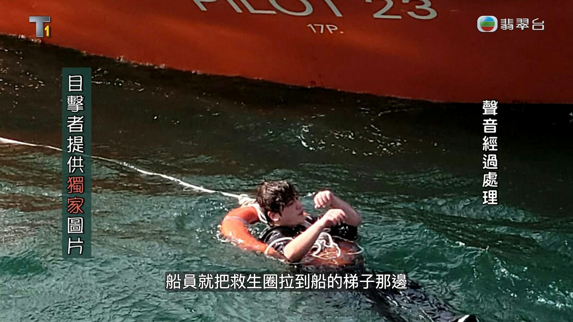 今日(25日)晚上的《東張西望》釋出觀眾提供姜濤墮海後獲救的獨家片段,片中可聽到姜濤大叫「Help」求救,圍欄處亦有不少人圍觀。目擊者陳先生通過電話表示,「(姜濤)跌落海嘅位置係突出嘅碼頭,隔離仲有幾個碼頭,我做運動聽到事發嘅碼頭有人大叫,望過去見到有人將水泡掟落水,咪影低,有船經過去救佢,但係我覺得佢仲可以郁,不過唔係話唔清醒。」