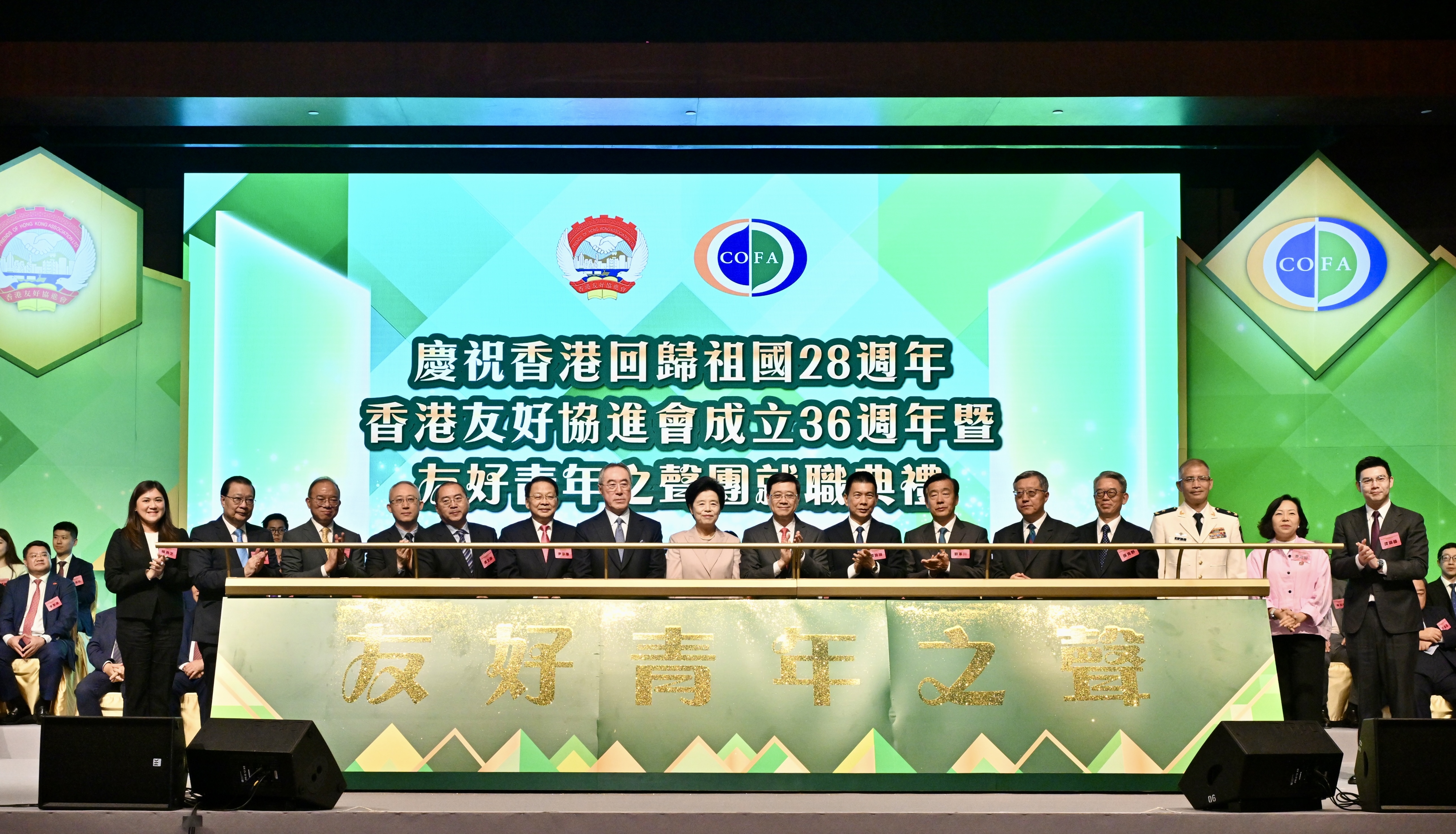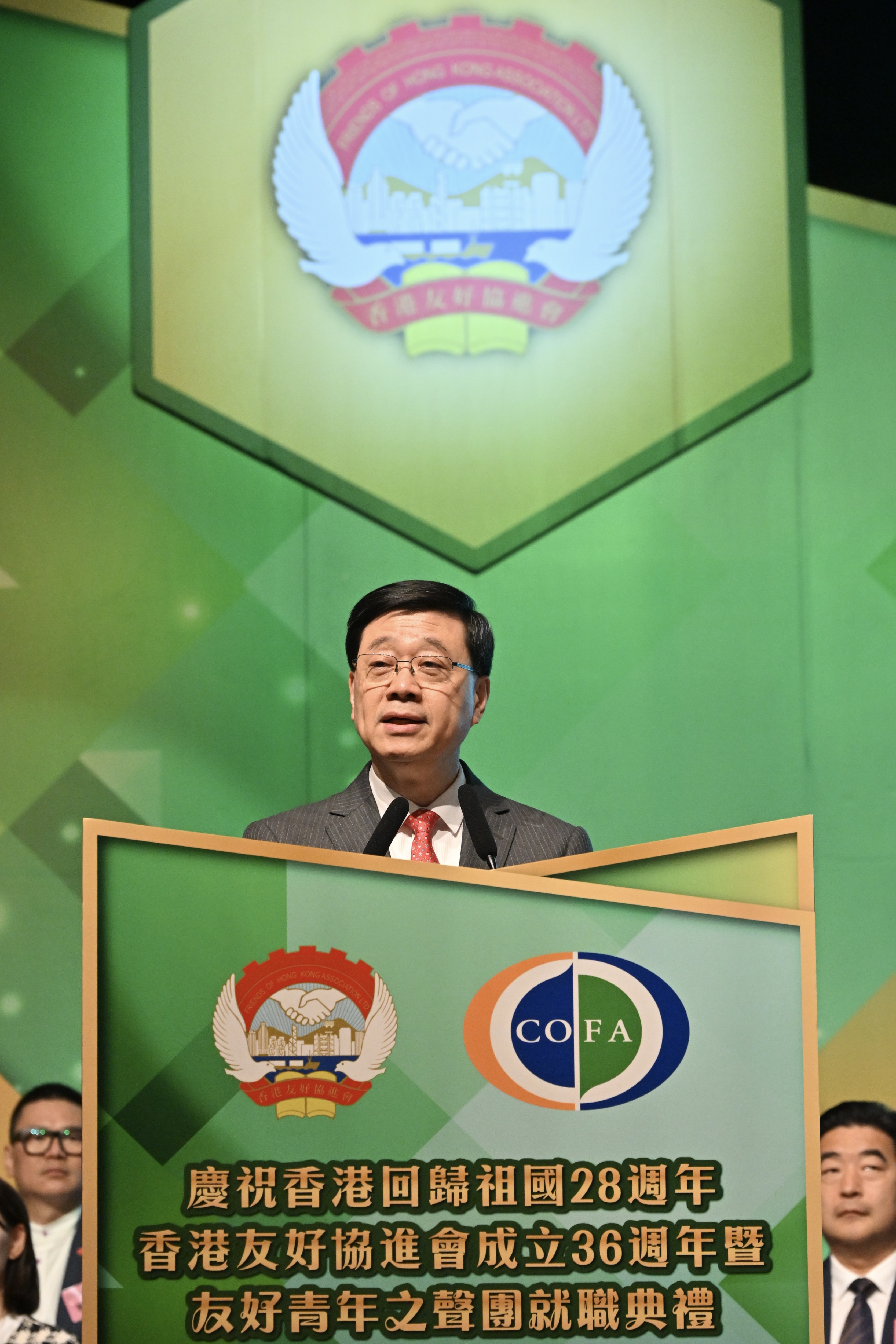 大公文匯全媒體報道,慶祝香港回歸祖國28周年、香港友好協進會成立36周年暨友好青年之聲團就職典禮25日於灣仔會展中心舉行,逾1000位社會各界嘉賓出席。全國政協副主席咸輝出席並致辭。行政長官李家超致辭表示,在香港走上由治及興的新征程上,必須統籌改革、發展、穩定,三者息息相關和互相牽引的關係。改革是經濟社會發展的動力,發展是解決經濟民生問題的關鍵,穩定是改革和發展的基石。在香港由治及興的進程中,統籌好三者相互融合,有助香港更光芒四射,市民生活更不斷進步。他鼓勵廣大愛國愛港社團在三方面更上層樓,服務國家,貢獻香港。